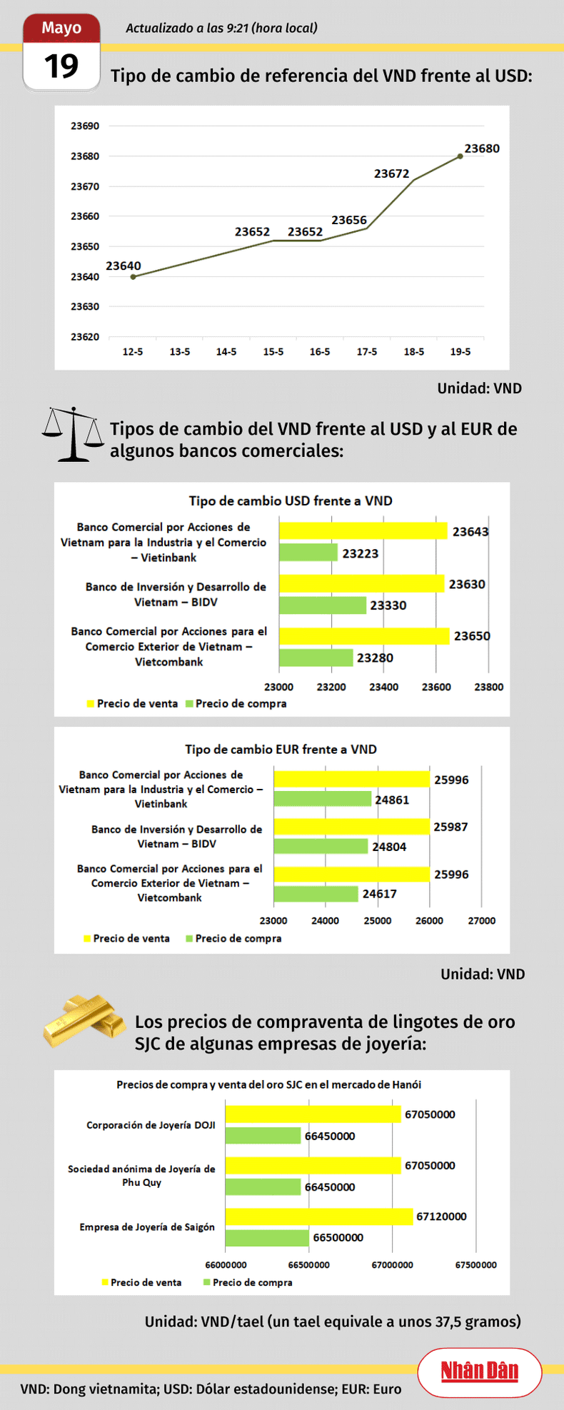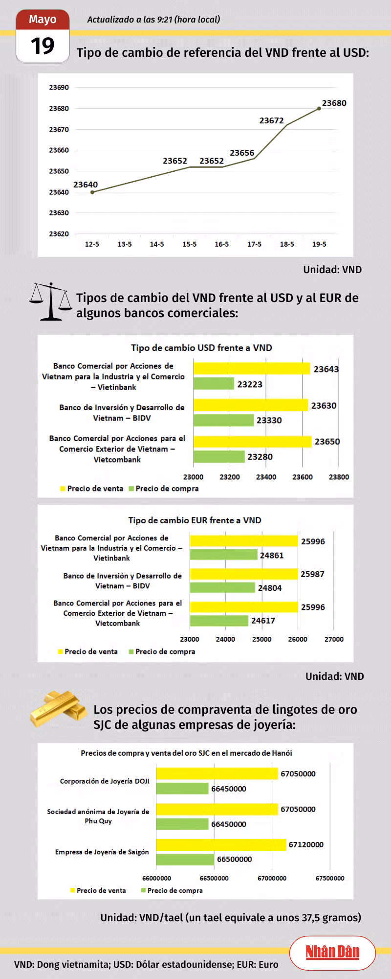 Infografía: Mercado de divisas y oro de Vietnam - 19 de mayo de 2023