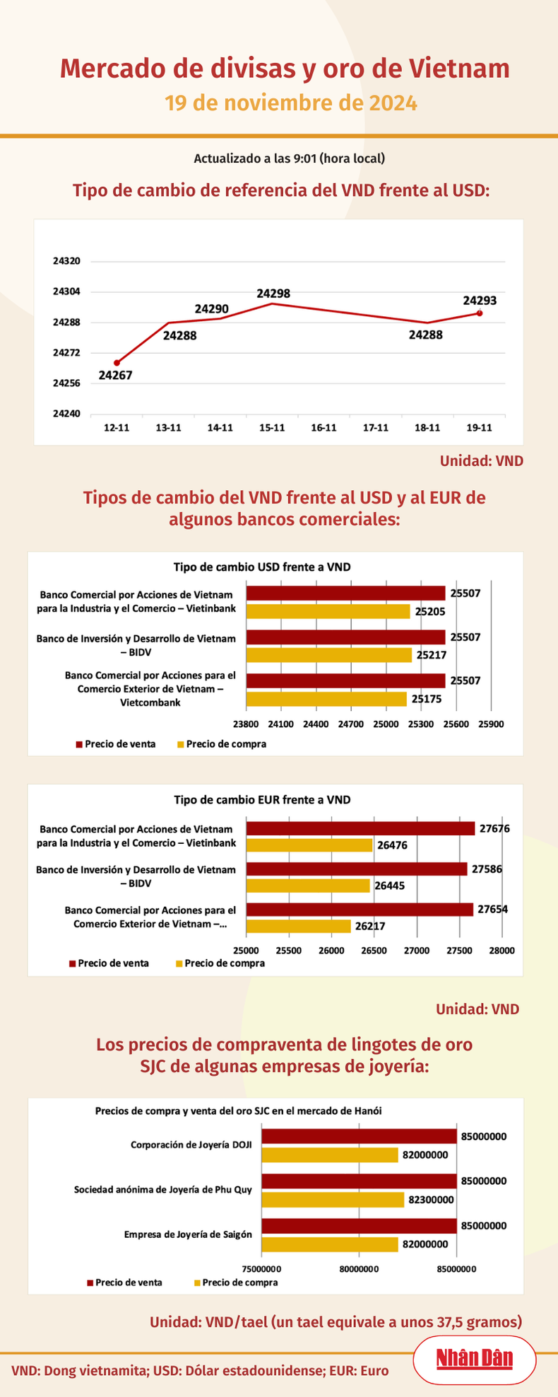 Infografía: Mercado de divisas y oro de Vietnam - 19 de noviembre de 2024