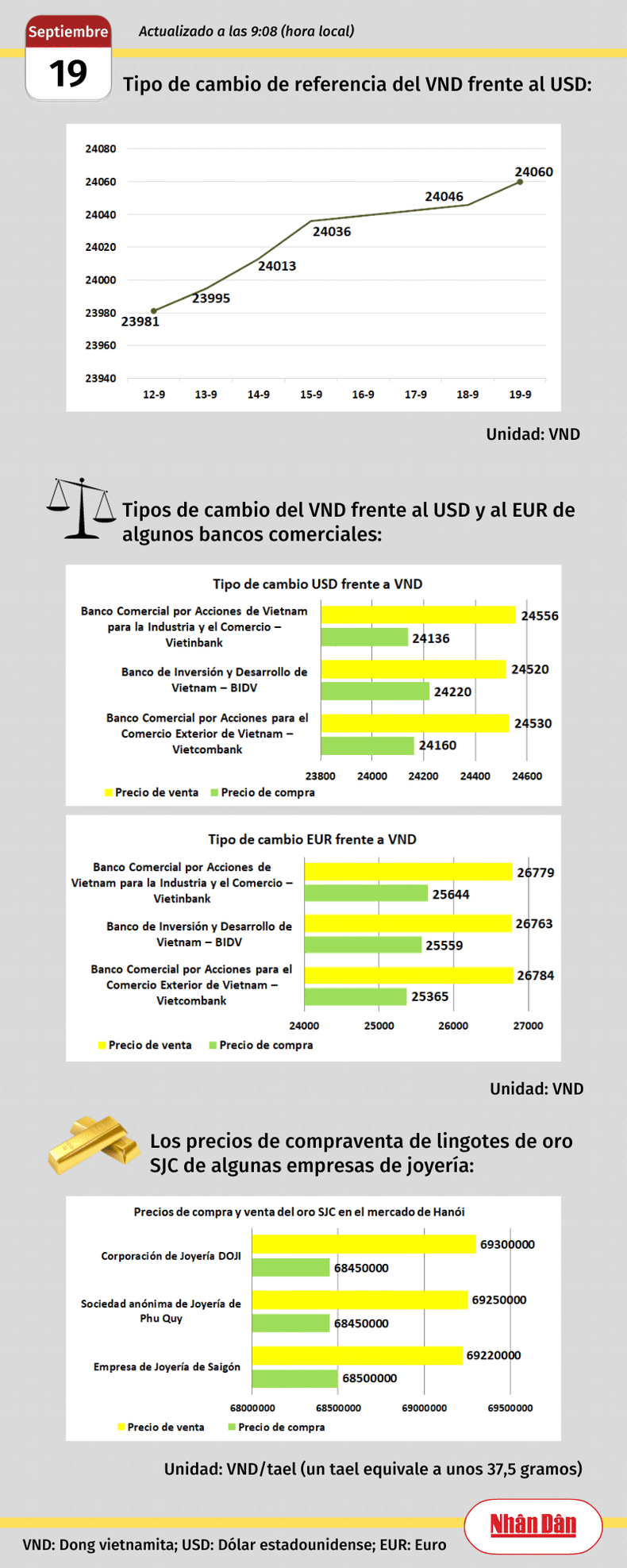 Infografía: Mercado de divisas y oro de Vietnam - 19 de septiembre de 2023