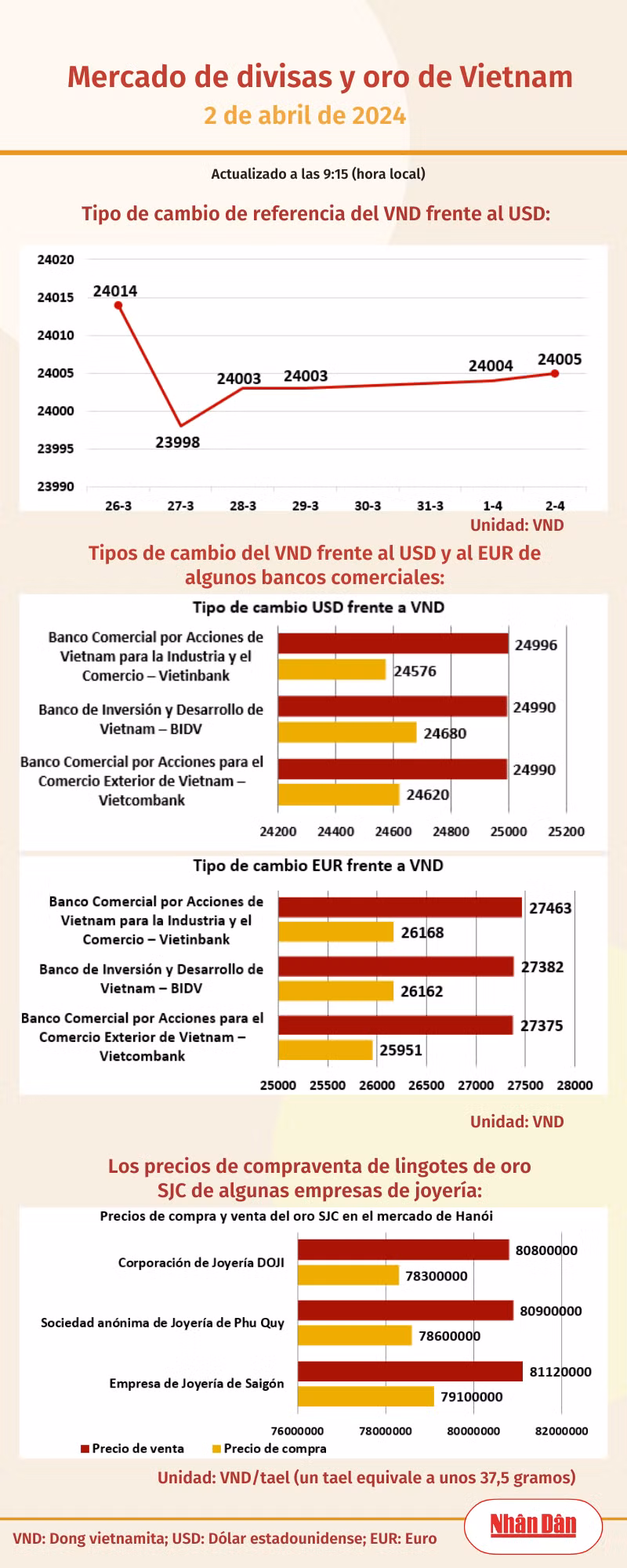 miércoles, abril 01, 2026 16:32 Infografía: Mercado bursátil de Vietnam - 1 de abril de 2026 Al cierre de la sesión del 1 de abril de 2026, la Bolsa de Ciudad Ho Chi Minh, en Vietnam, registró 208 valores que subieron, 106 que bajaron y 67 sin variación, mientras en Hanói las cifras marcaron 80, 82 y 64.