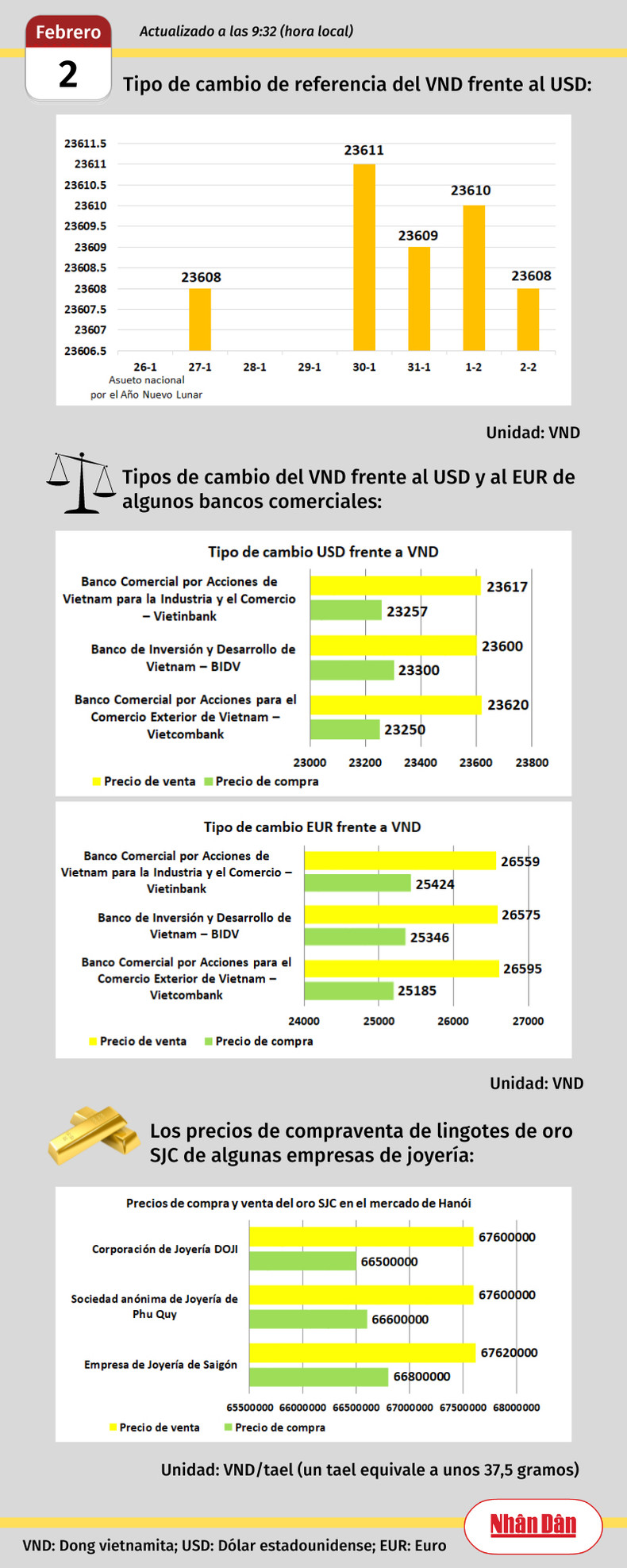 Infografía: Mercado de divisas y oro de Vietnam - 2 de febrero de 2023