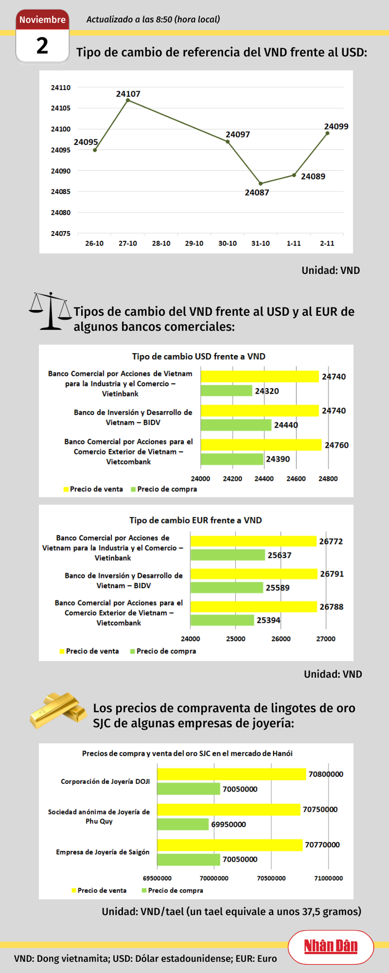 Infografía: Mercado de divisas y oro de Vietnam - 2 de noviembre de 2023