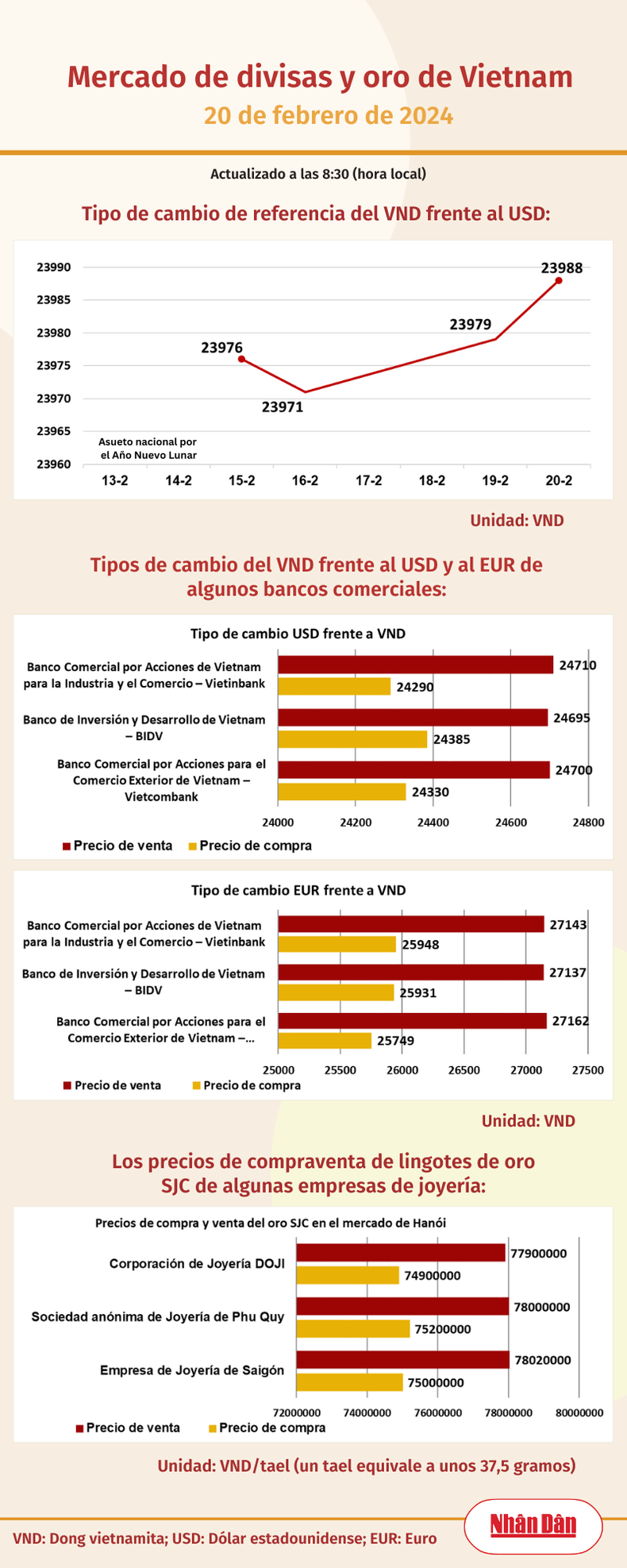 Infografía: Mercado de divisas y oro de Vietnam - 20 de febrero de 2024
