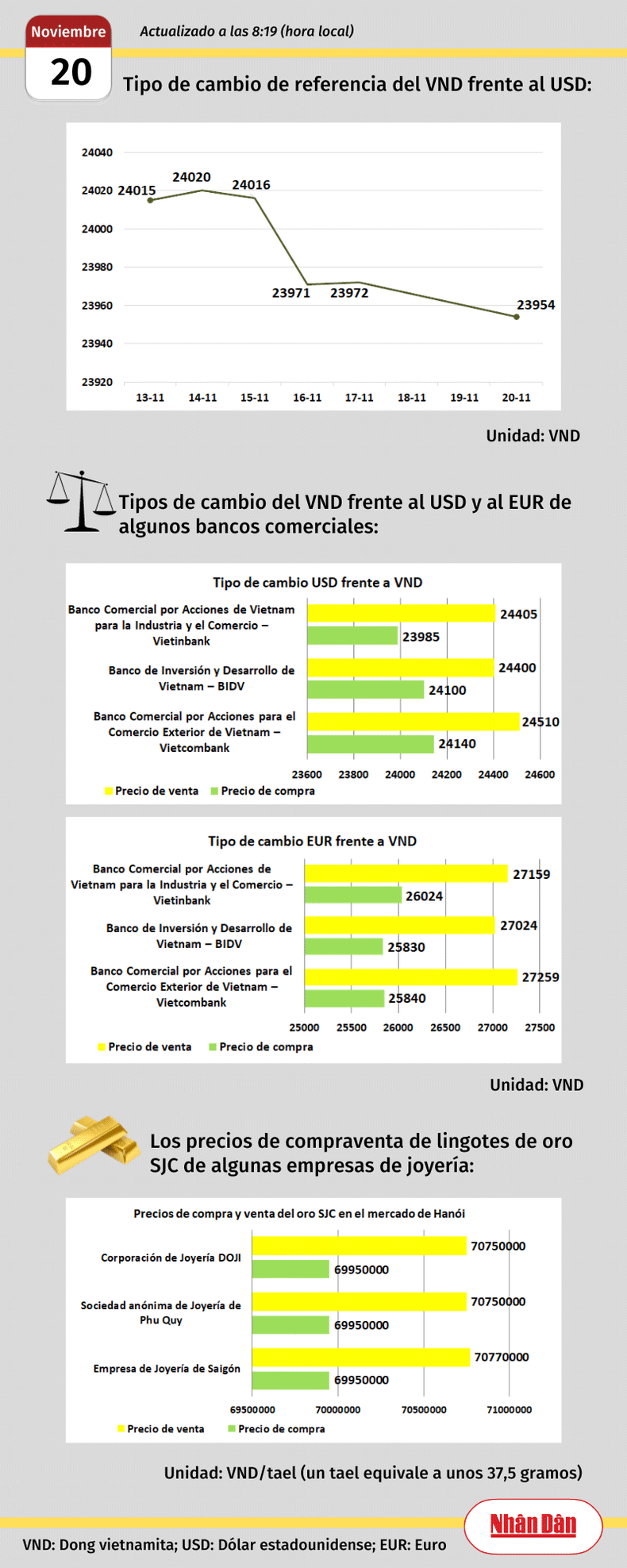 Infografía: Mercado de divisas y oro de Vietnam - 20 de noviembre de 2023
