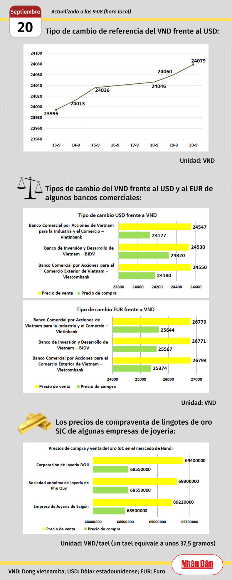 Infografía: Mercado de divisas y oro de Vietnam - 20 de septiembre de 2023