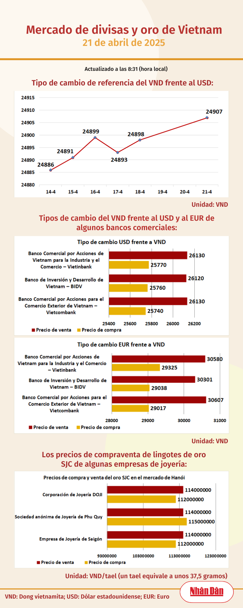 Infografía: Mercado de divisas y oro de Vietnam - 21 de abril de 2025