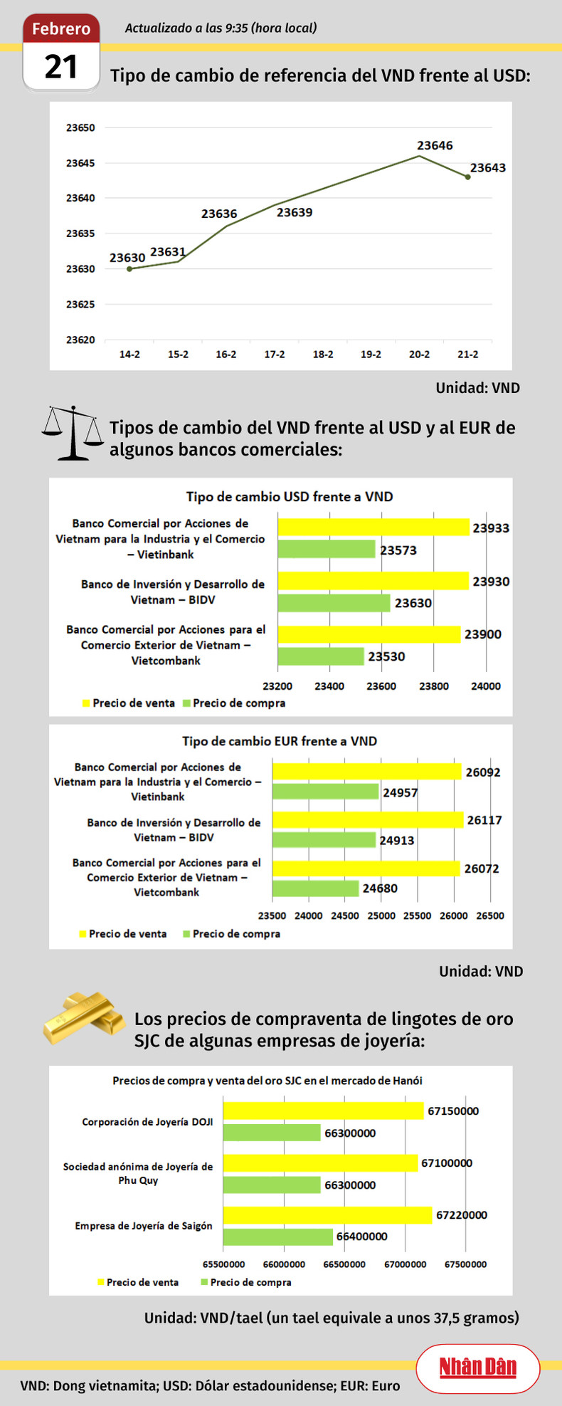 Infografía: Mercado de divisas y oro de Vietnam - 21 de febrero de 2023