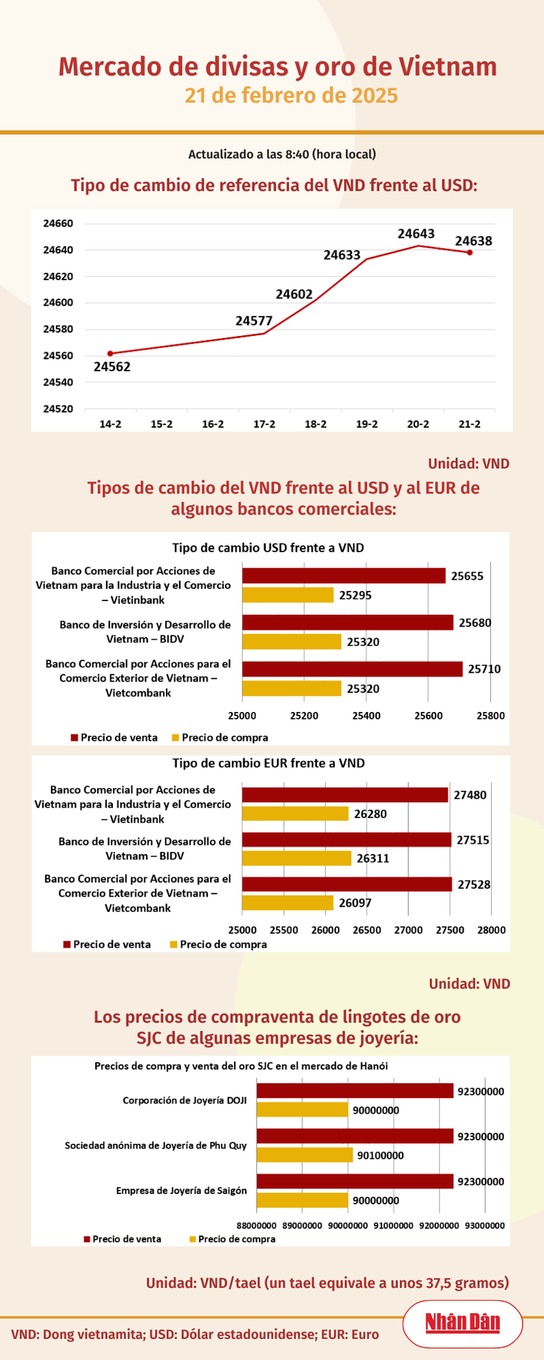 Infografía: Mercado de divisas y oro de Vietnam - 21 de febrero de 2025