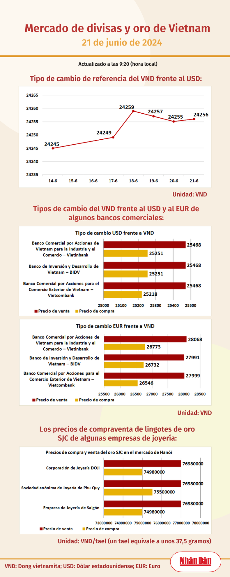 Infografía: Mercado de divisas y oro de Vietnam - 21 de junio de 2024