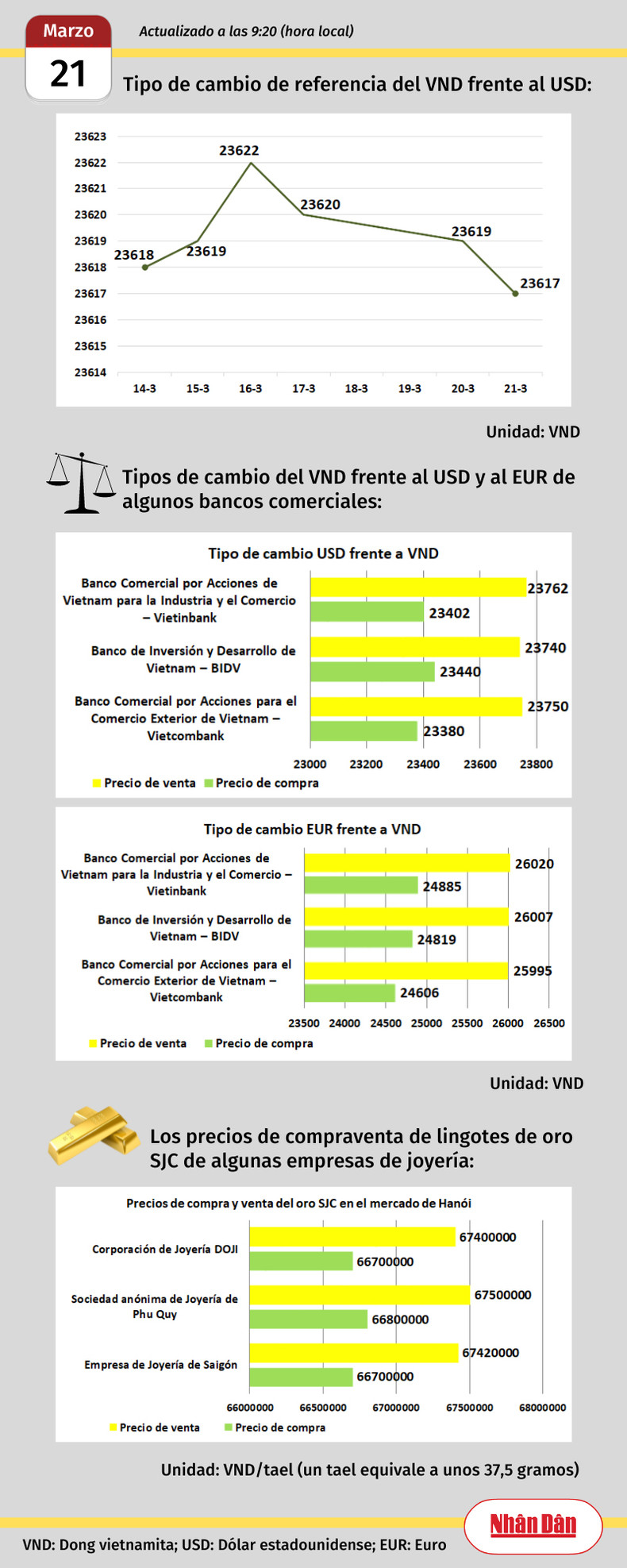 Infografía: Mercado de divisas y oro de Vietnam - 21 de marzo de 2023