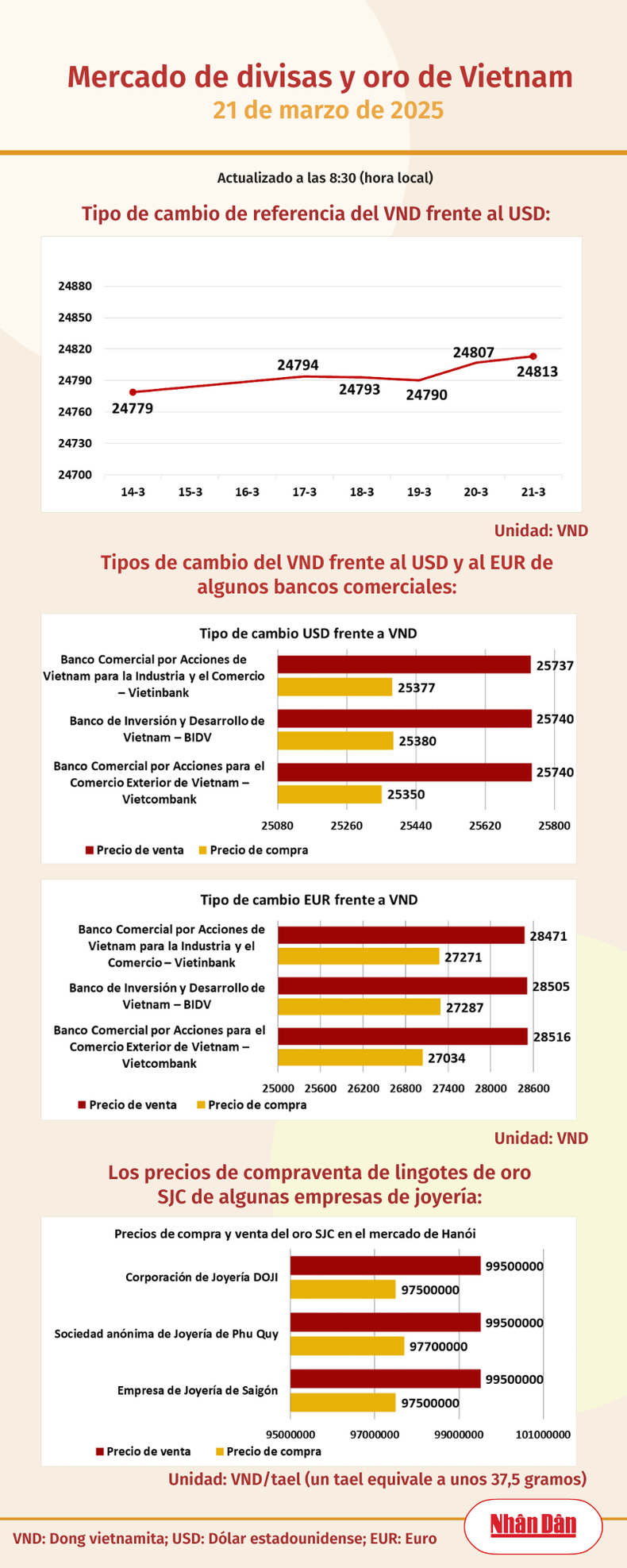 Infografía: Mercado de divisas y oro de Vietnam - 21 de marzo de 2025