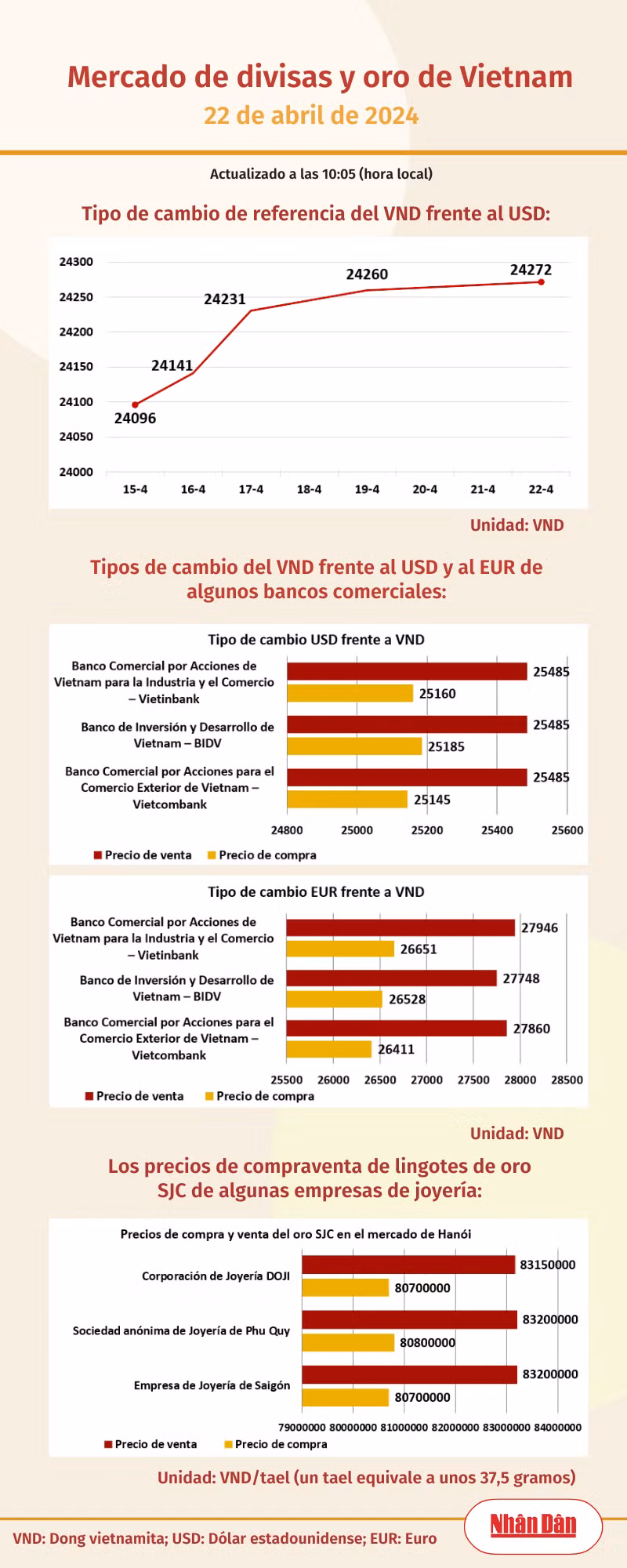 Infografía: Mercado de divisas y oro de Vietnam - 22 de abril de 2024