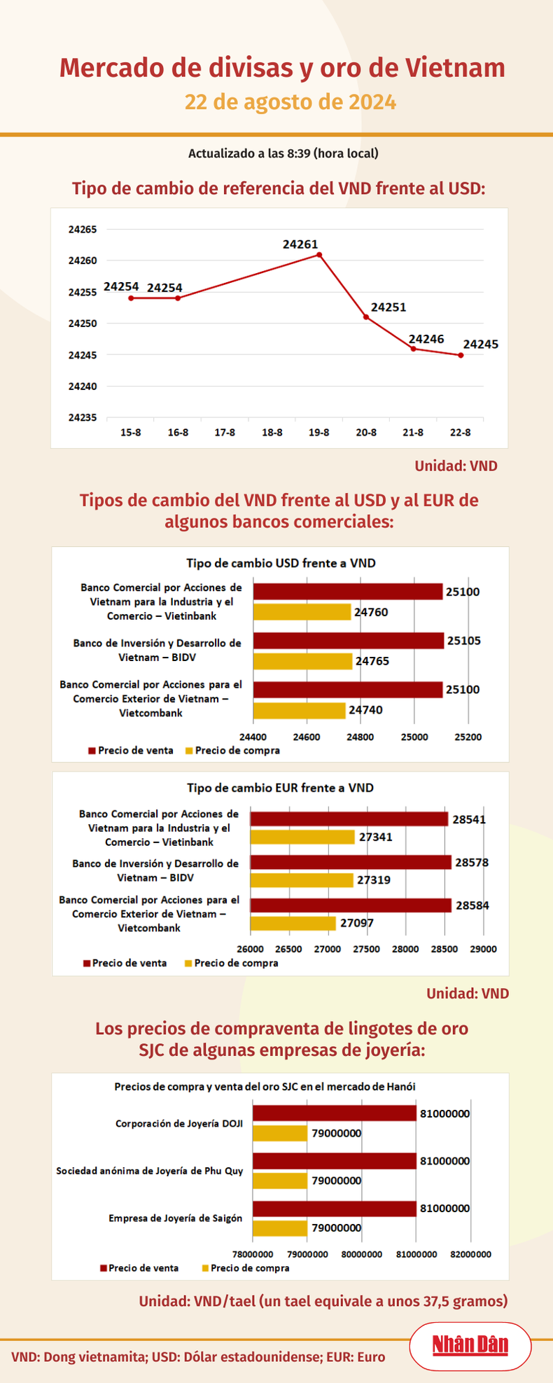 Infografía: Mercado de divisas y oro de Vietnam - 22 de agosto de 2024