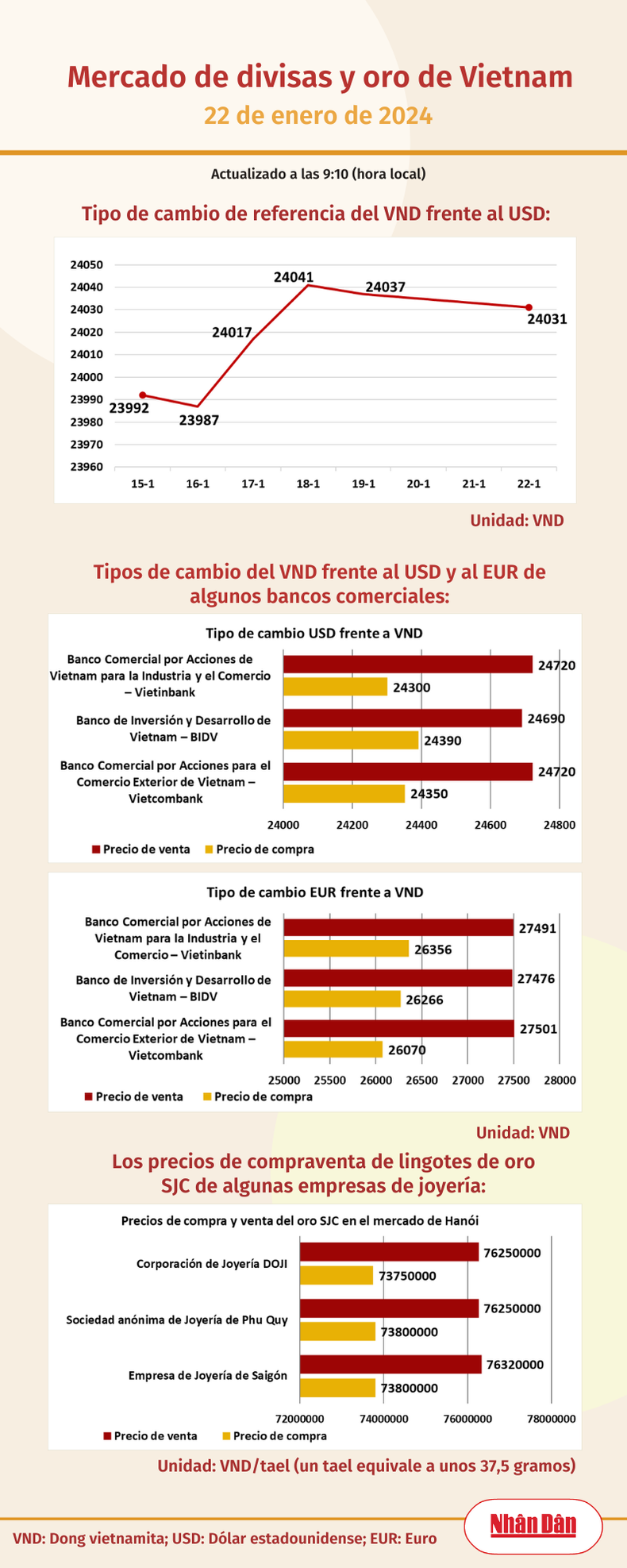 Infografía: Mercado de divisas y oro de Vietnam - 22 de enero de 2024