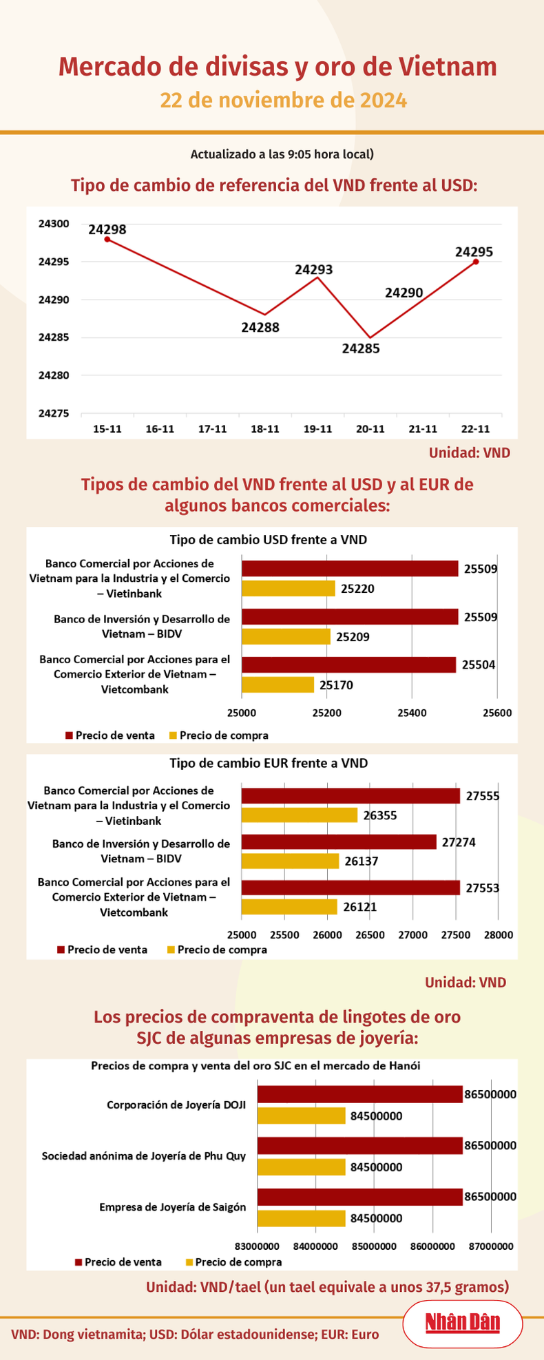 Infografía: Mercado de divisas y oro de Vietnam - 22 de noviembre de 2024
