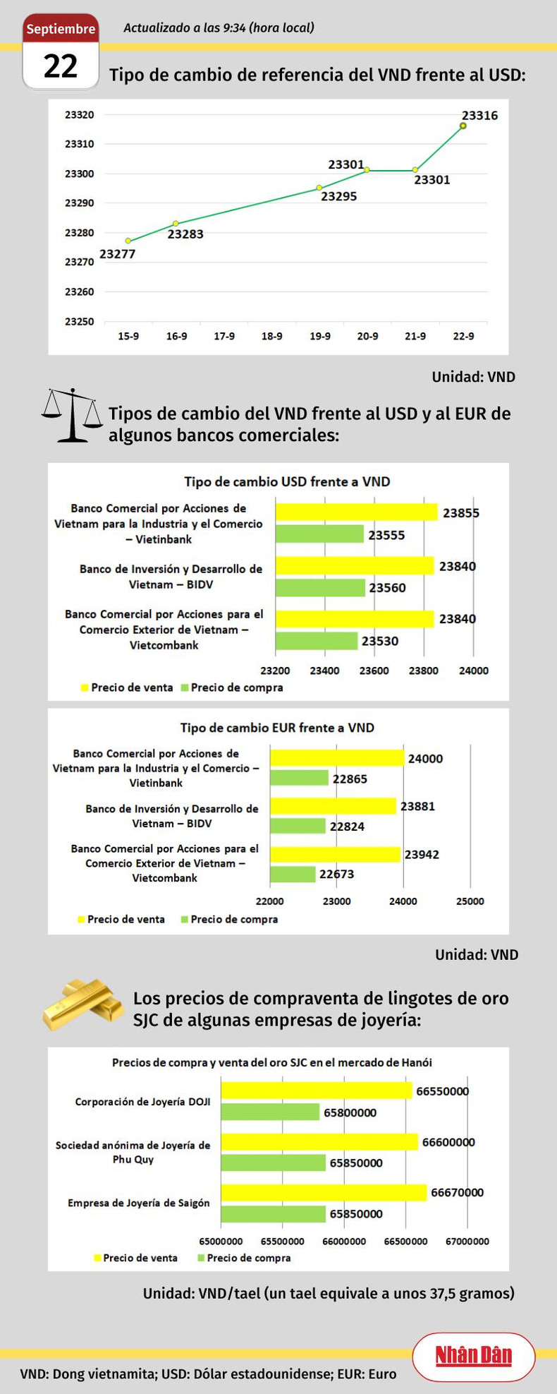 Infografía: Mercado de divisas y oro de Vietnam - 22 de septiembre de 2022