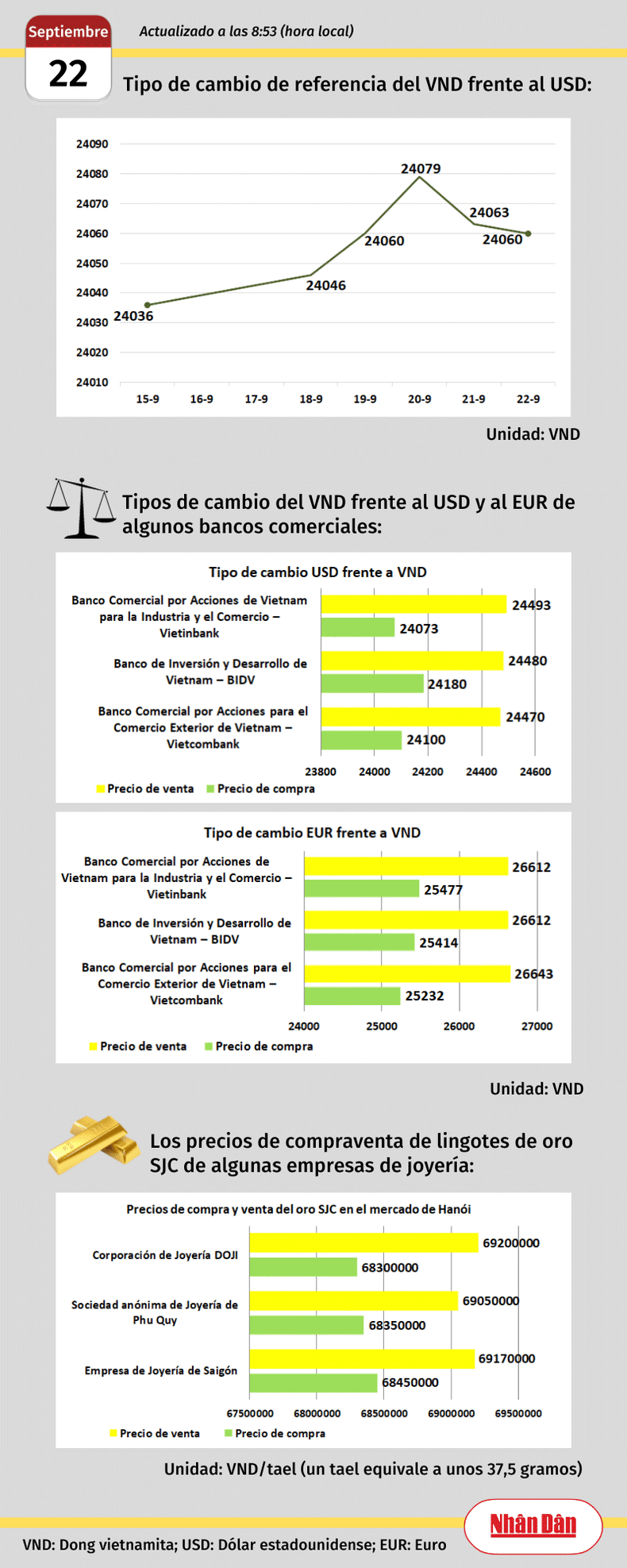 Infografía: Mercado de divisas y oro de Vietnam - 22 de septiembre de 2023