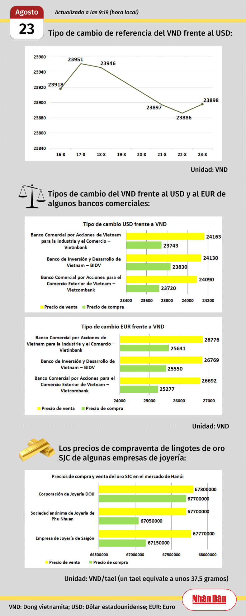 Infografía: Mercado de divisas y oro de Vietnam - 23 de agosto de 2023