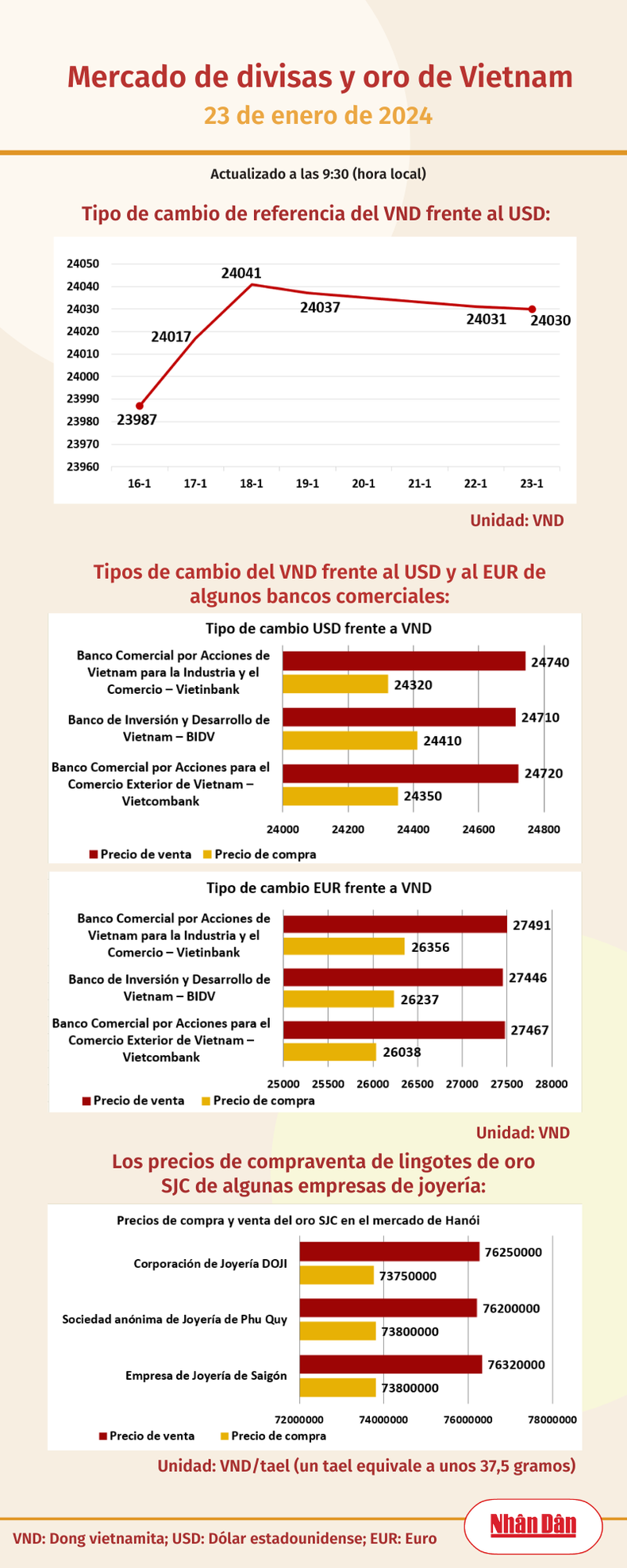 Infografía: Mercado de divisas y oro de Vietnam - 23 de enero de 2024