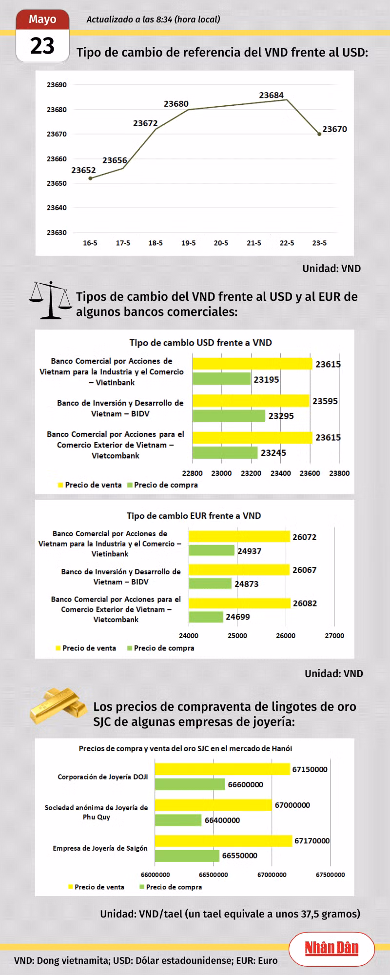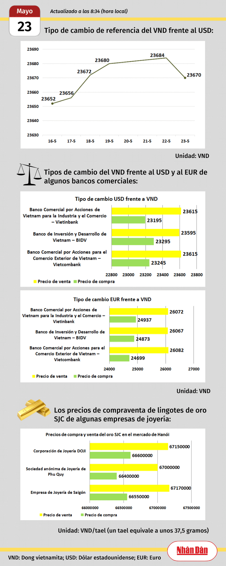 Infografía: Mercado de divisas y oro de Vietnam - 23 de mayo de 2023