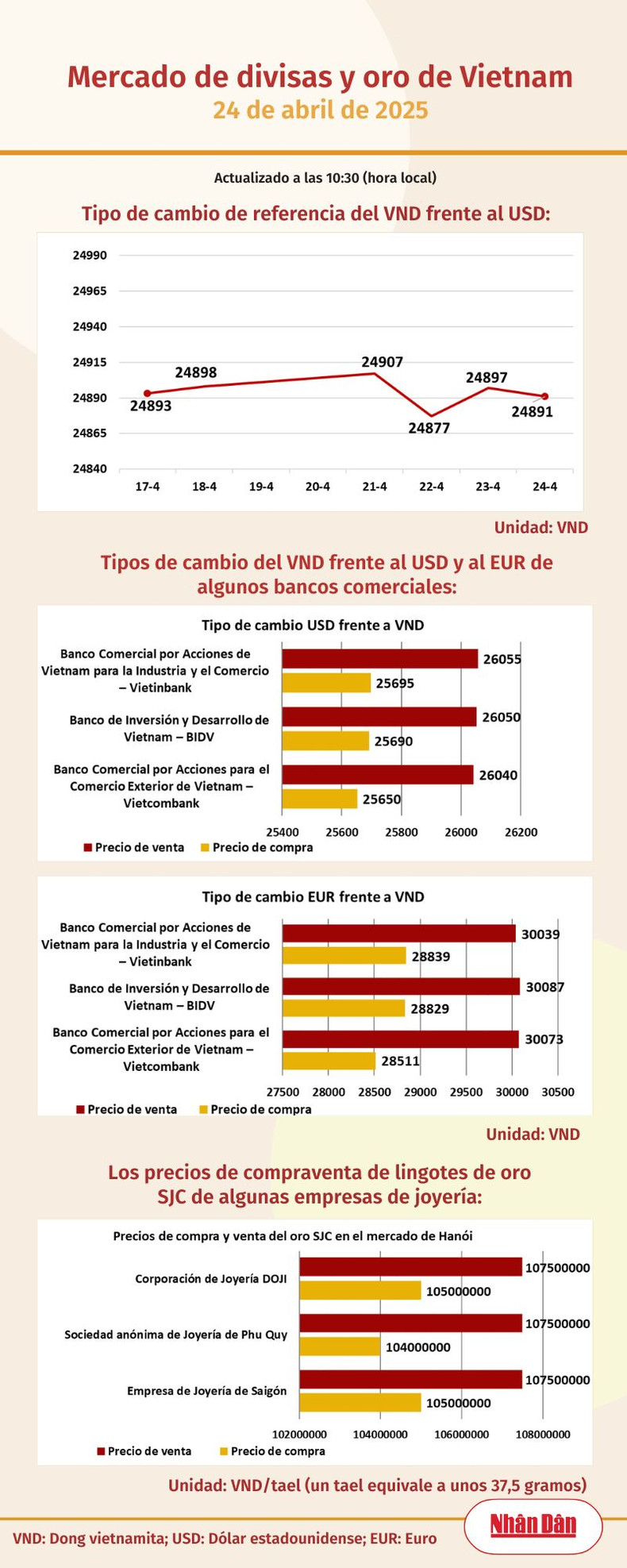 Infografía: Mercado de divisas y oro de Vietnam -24 de abril de 2025