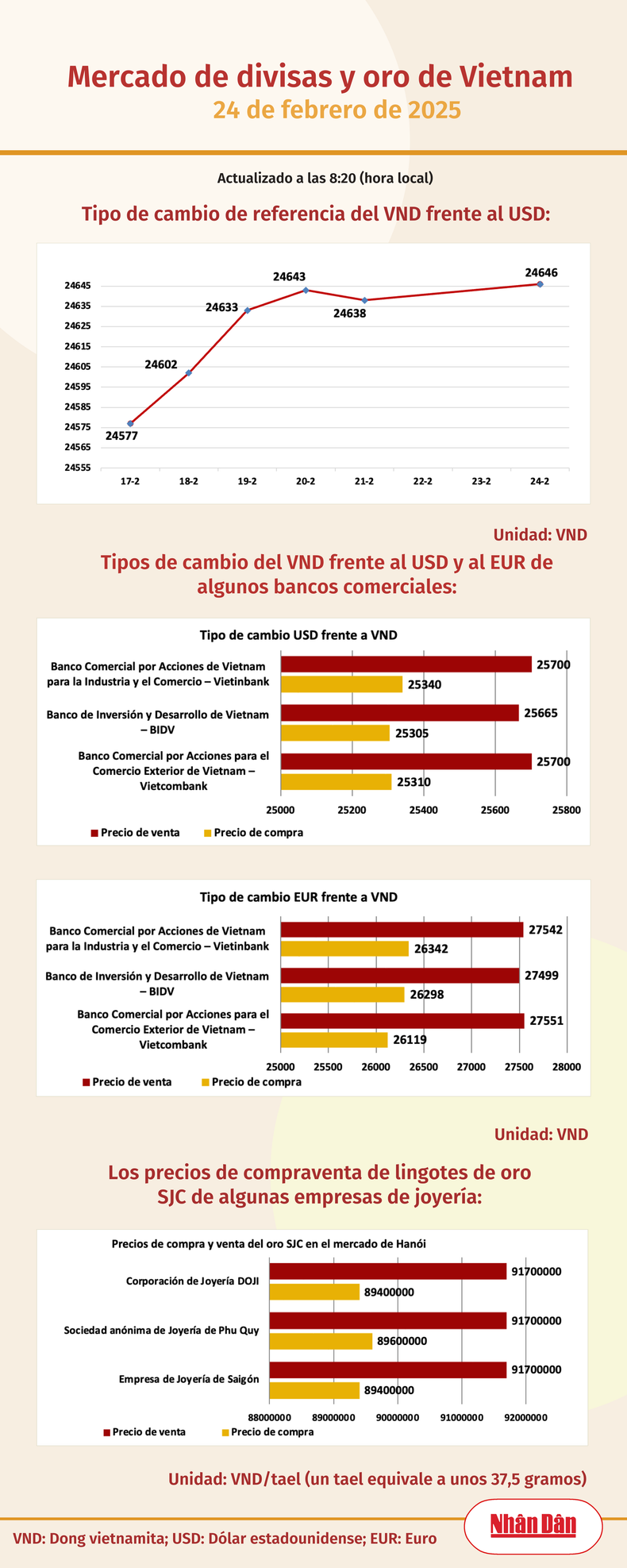 Infografía: Mercado de divisas y oro de Vietnam - 24 de febrero de 2025
