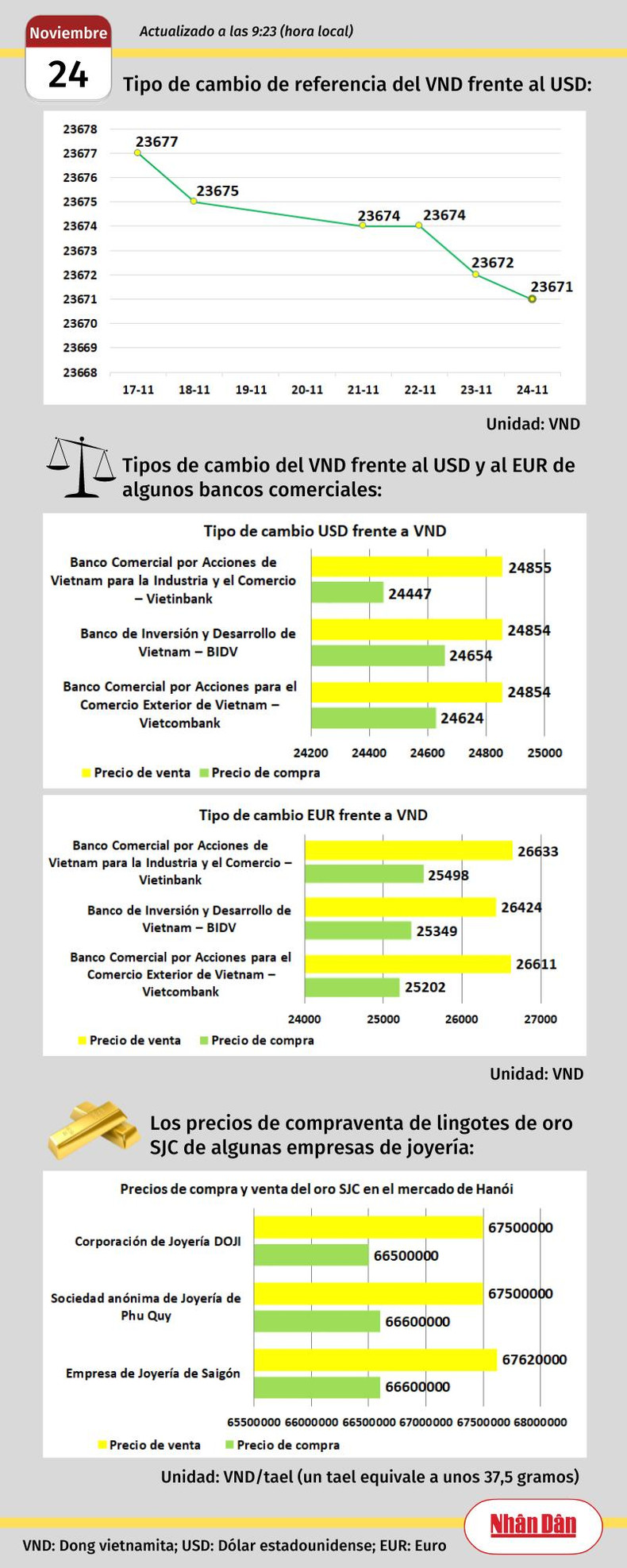 Infografía: Mercado de divisas y oro de Vietnam - 24 de noviembre de 2022