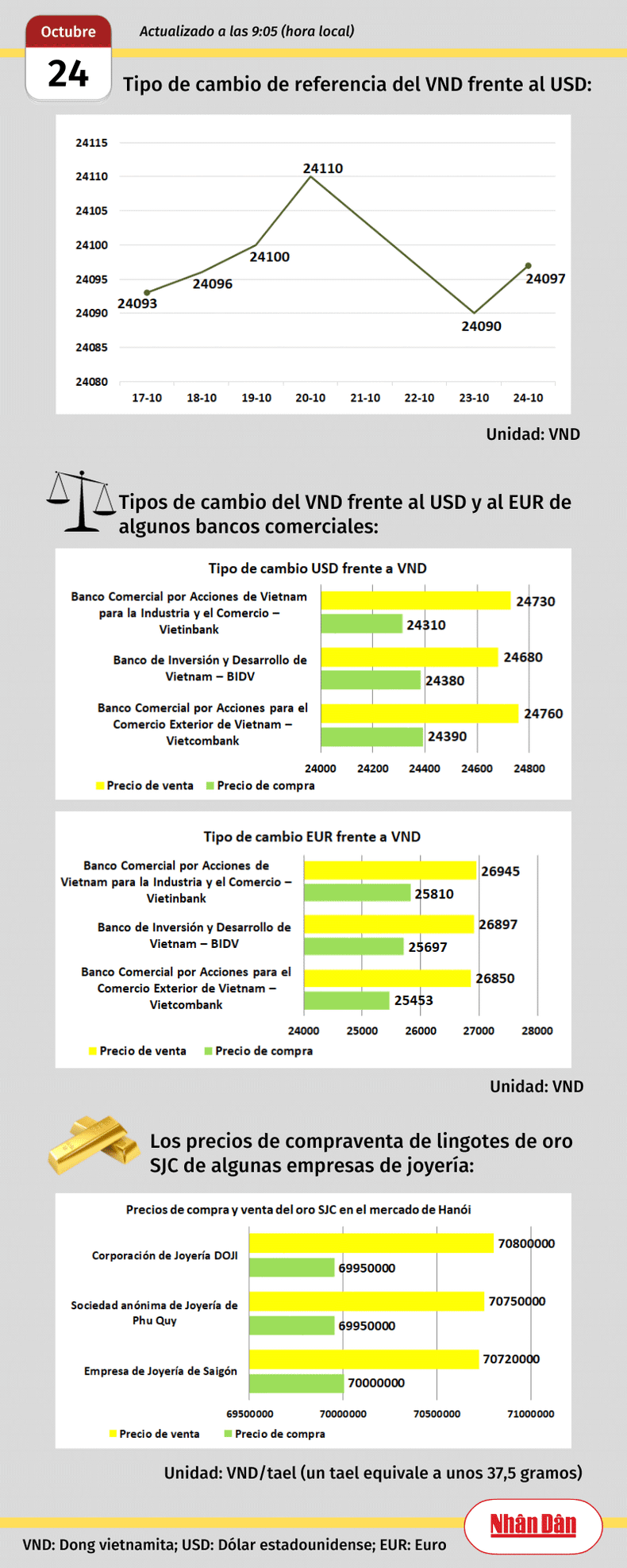 Infografía: Mercado de divisas y oro de Vietnam - 24 de octubre de 2023