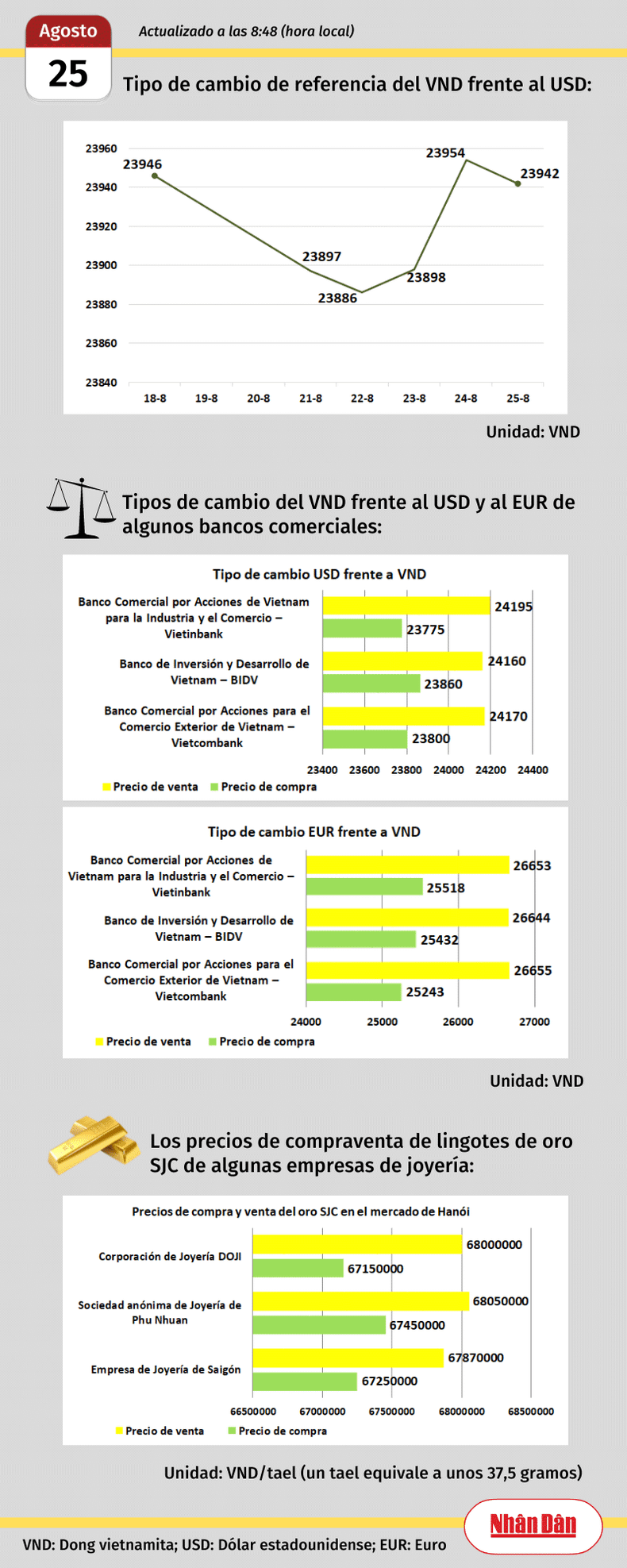 Infografía: Mercado de divisas y oro de Vietnam - 25 de agosto de 2023