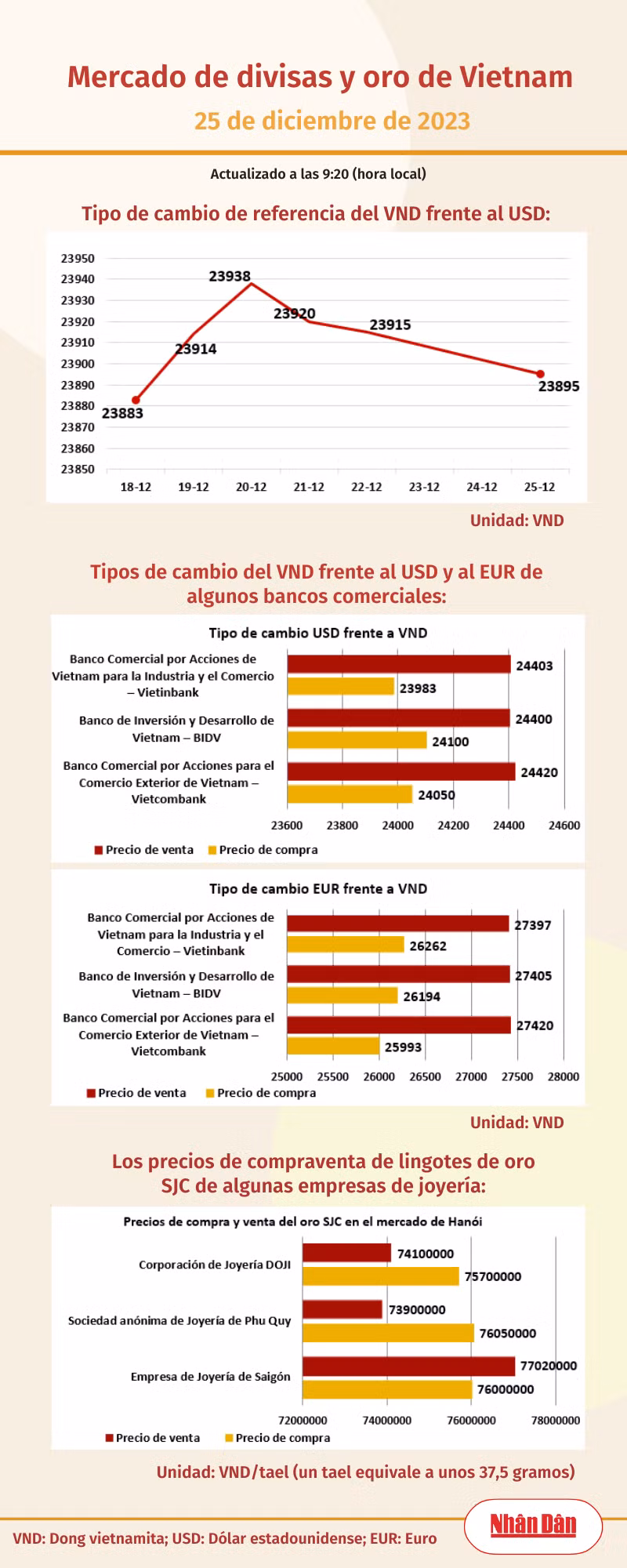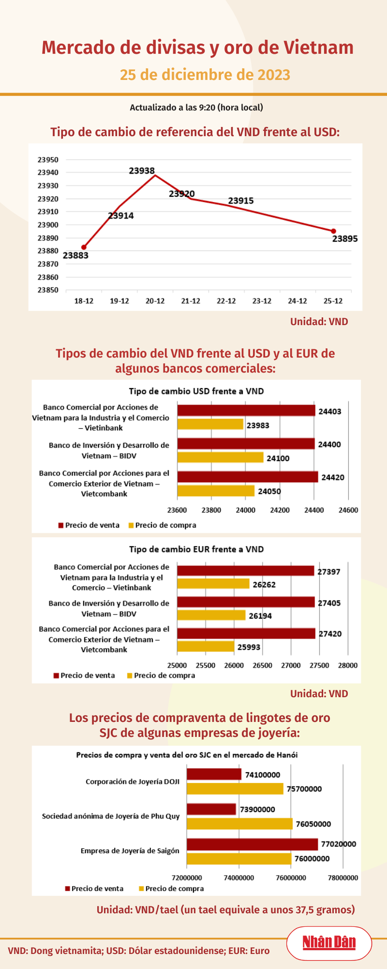 Infografía: Mercado de divisas y oro de Vietnam - 25 de diciembre de 2023