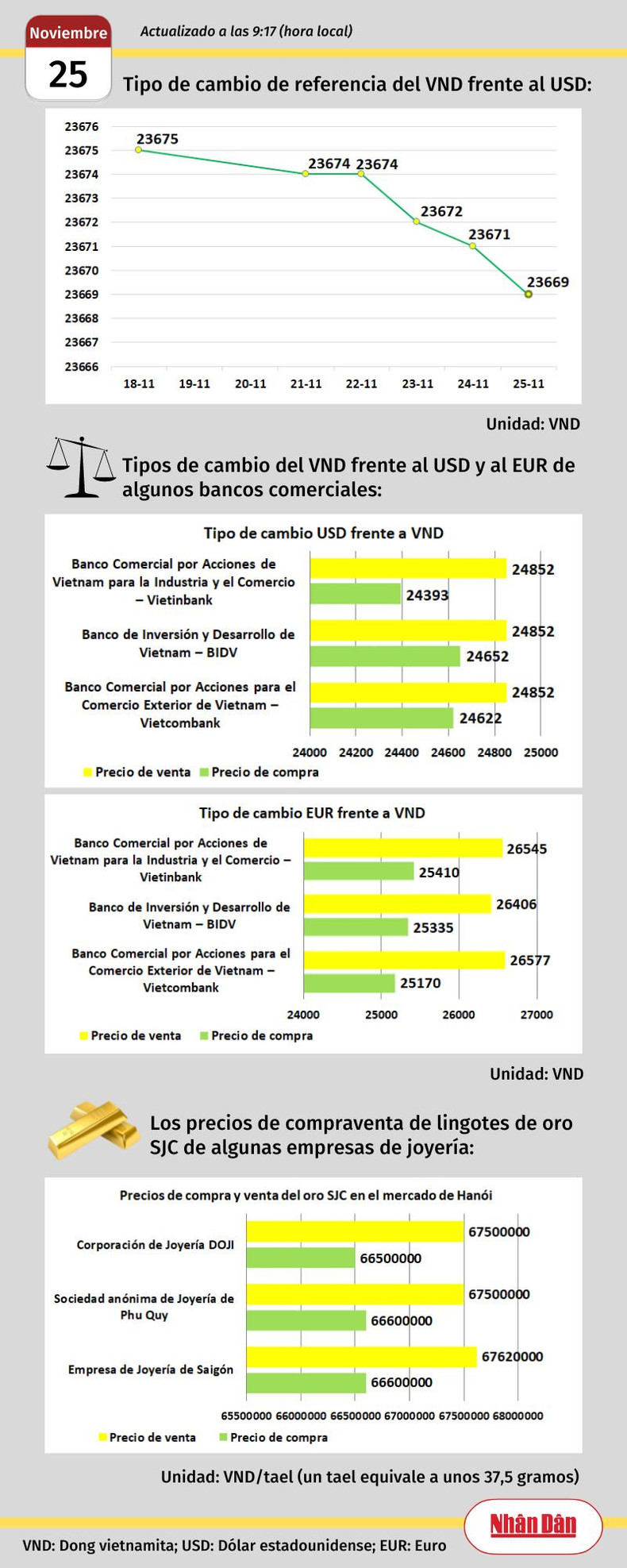 Infografía: Mercado de divisas y oro de Vietnam - 25 de noviembre de 2022