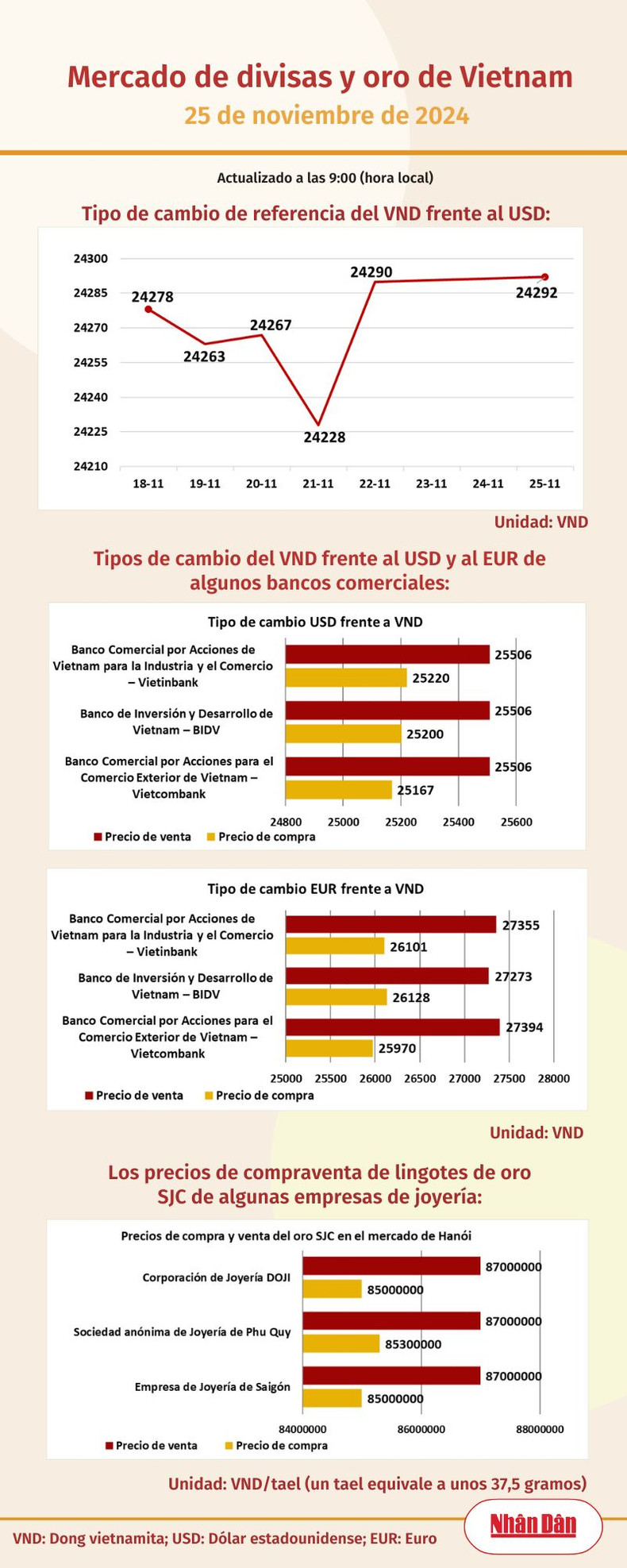 Infografía: Mercado de divisas y oro de Vietnam - 25 de noviembre de 2024