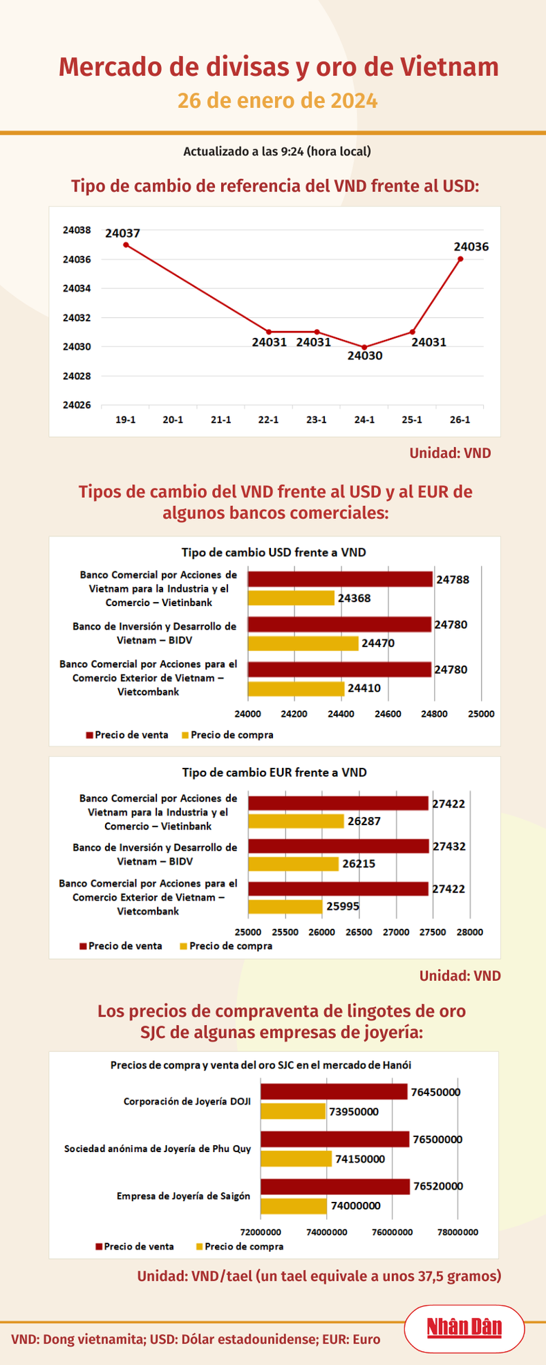 Infografía: Mercado de divisas y oro de Vietnam - 26 de enero de 2024