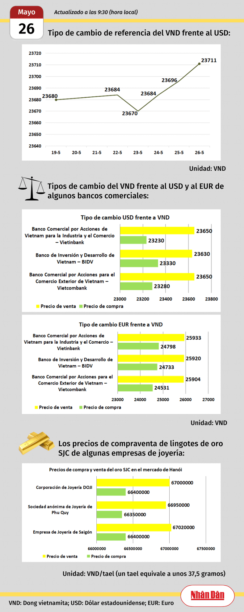 Infografía: Mercado de divisas y oro de Vietnam - 26 de mayo de 2023