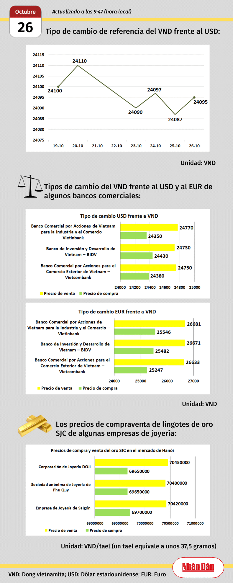Infografía: Mercado de divisas y oro de Vietnam - 26 de octubre de 2023