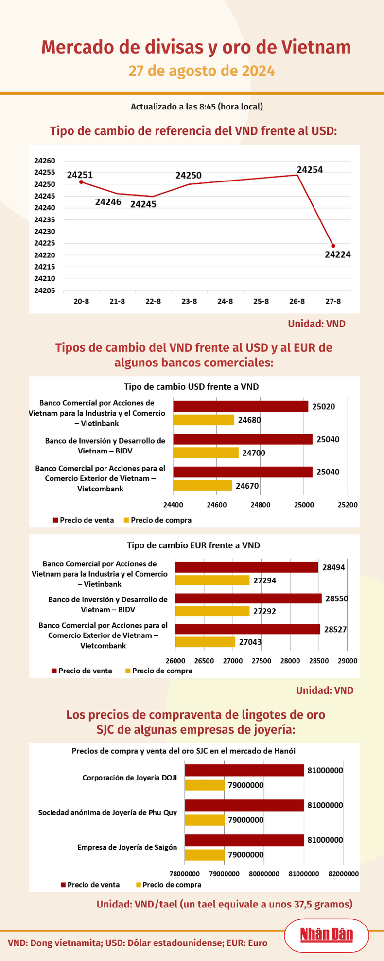 Infografía: Mercado de divisas y oro de Vietnam - 27 de agosto de 2024