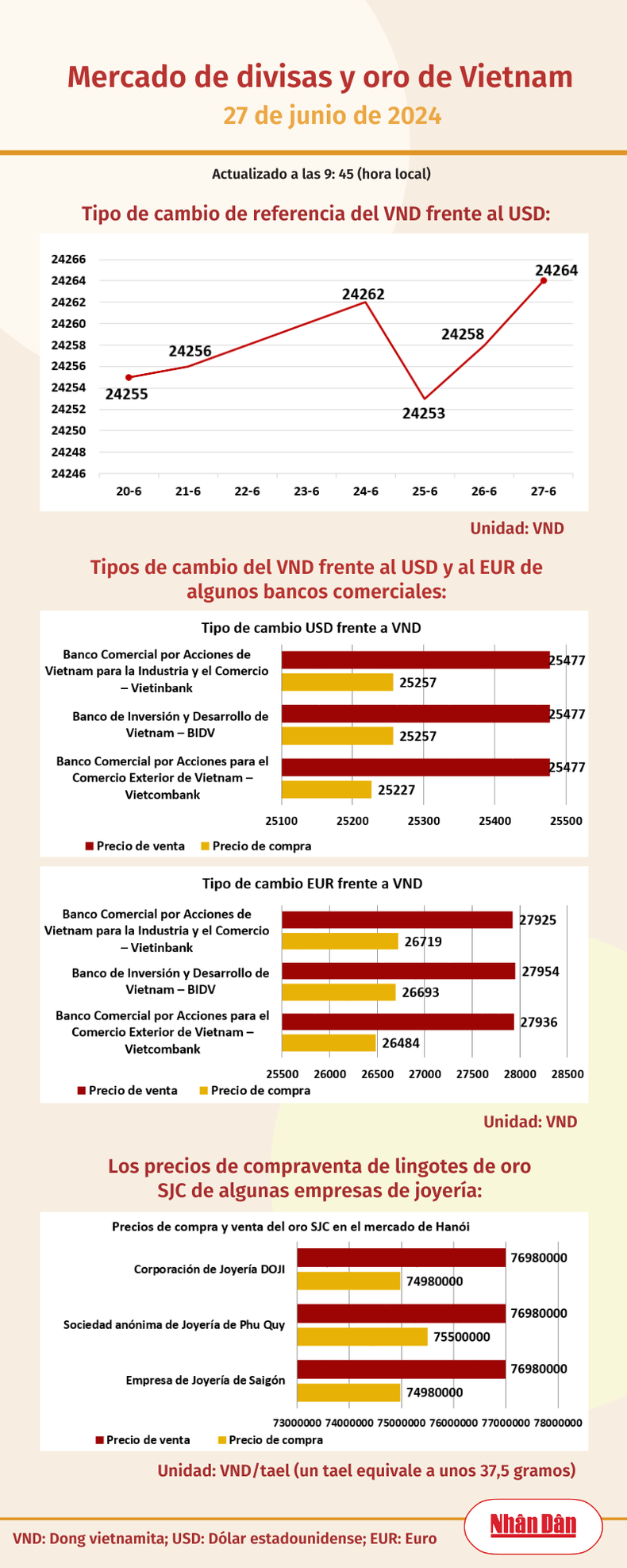 Infografía: Mercado de divisas y oro de Vietnam - 27 de junio de 2024