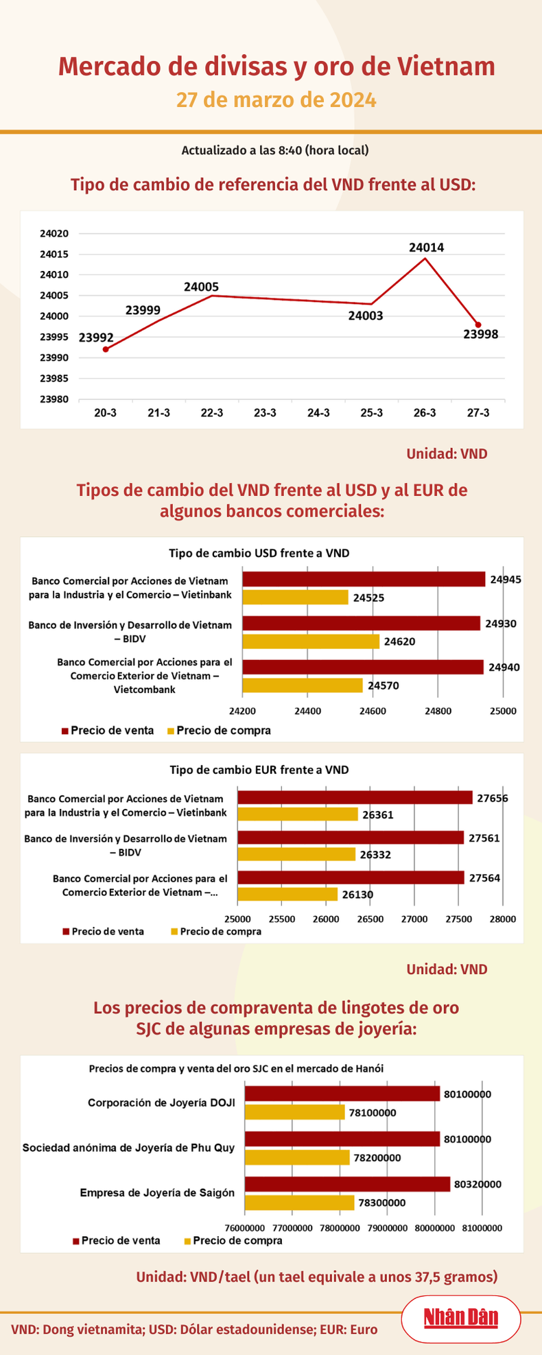 Infografía: Mercado de divisas y oro de Vietnam - 27 de marzo de 2024