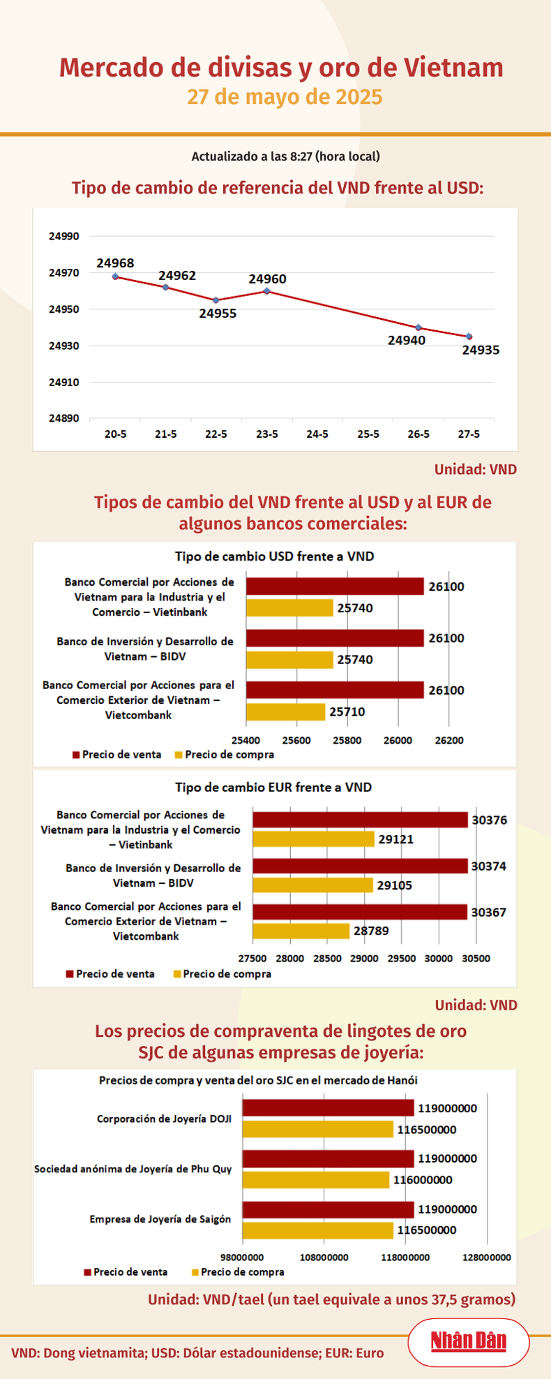 Infografía: Mercado de divisas y oro de Vietnam - 27 de mayo de 2025
