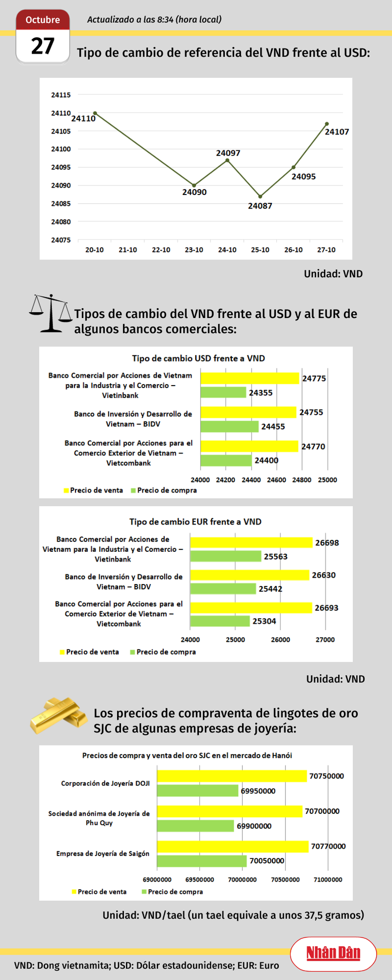 Infografía: Mercado de divisas y oro de Vietnam - 27 de octubre de 2023