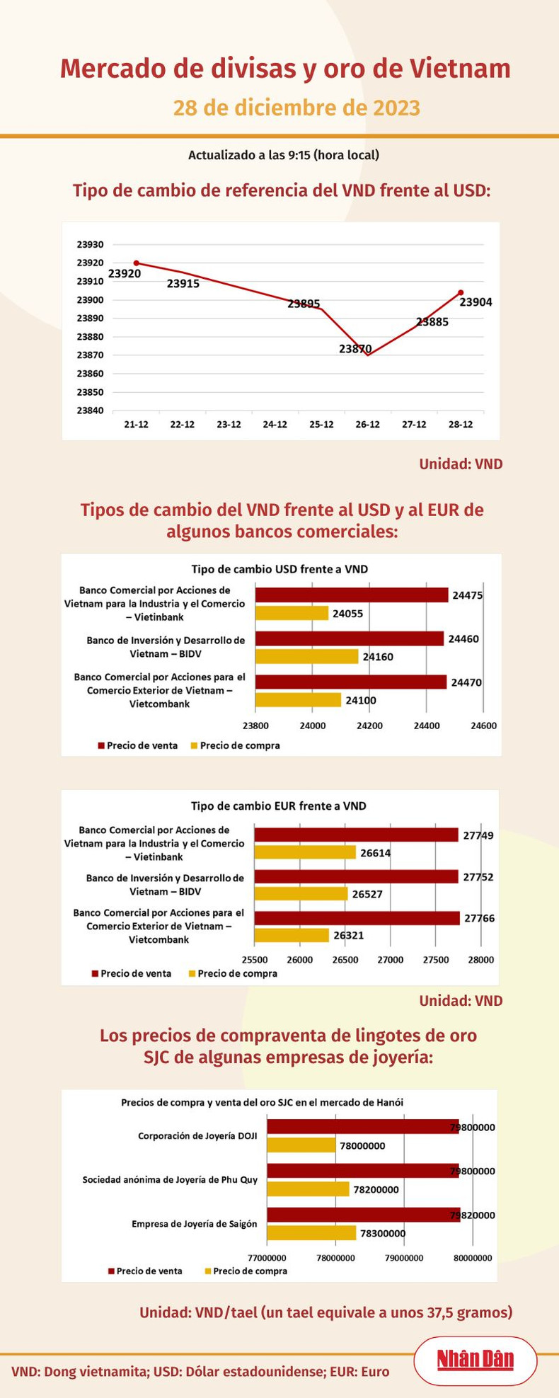Infografía: Mercado de divisas y oro de Vietnam - 28 de diciembre de 2023