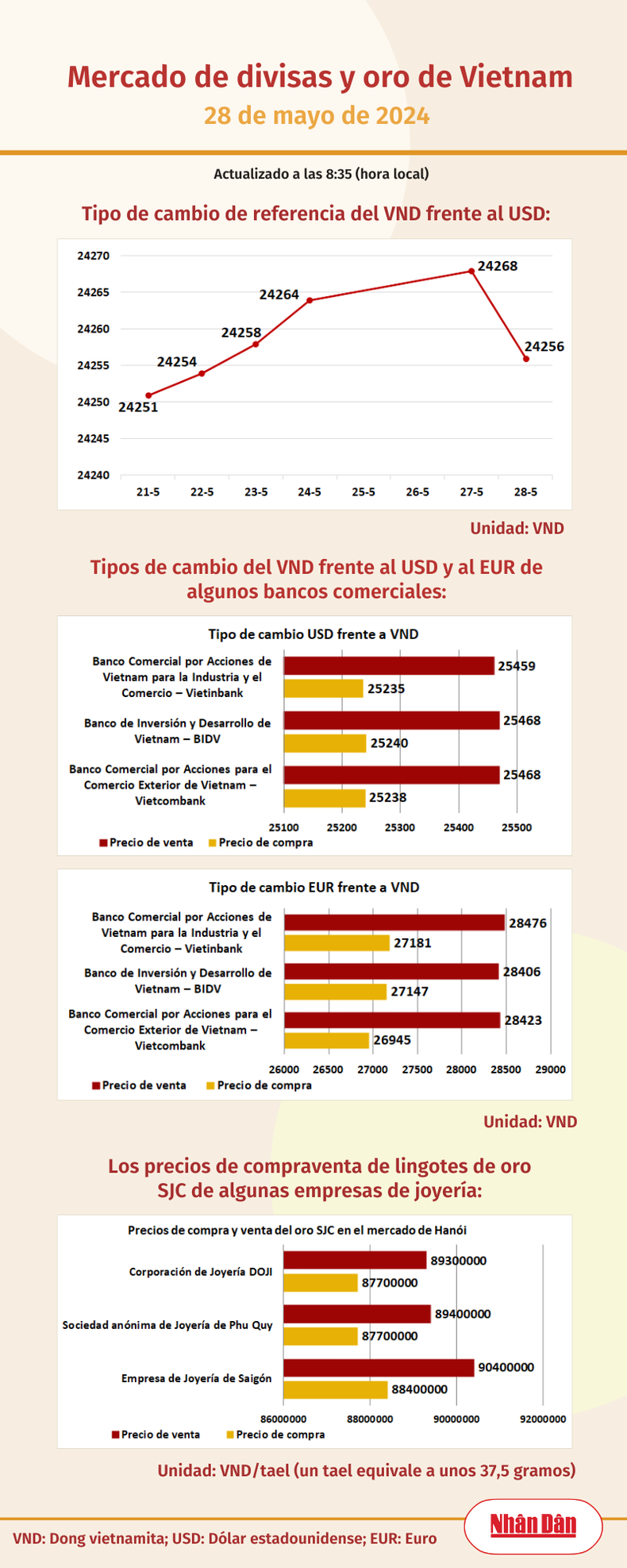 Infografía: Mercado de divisas y oro de Vietnam - 28 de mayo de 2024