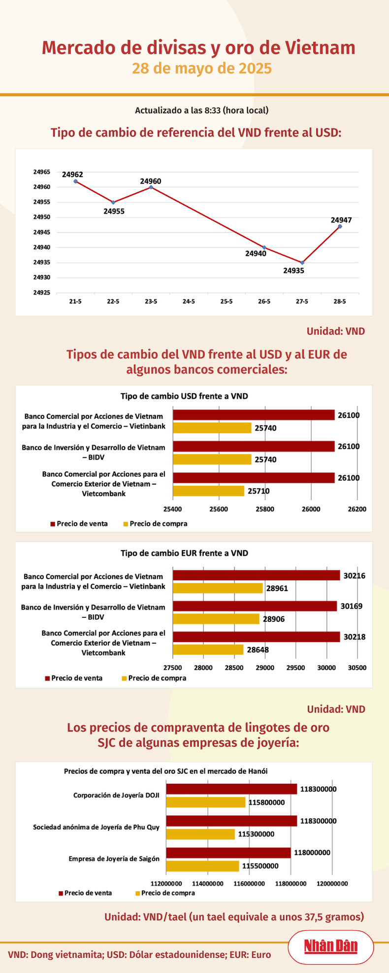 Infografía: Mercado de divisas y oro de Vietnam - 28 de mayo de 2025