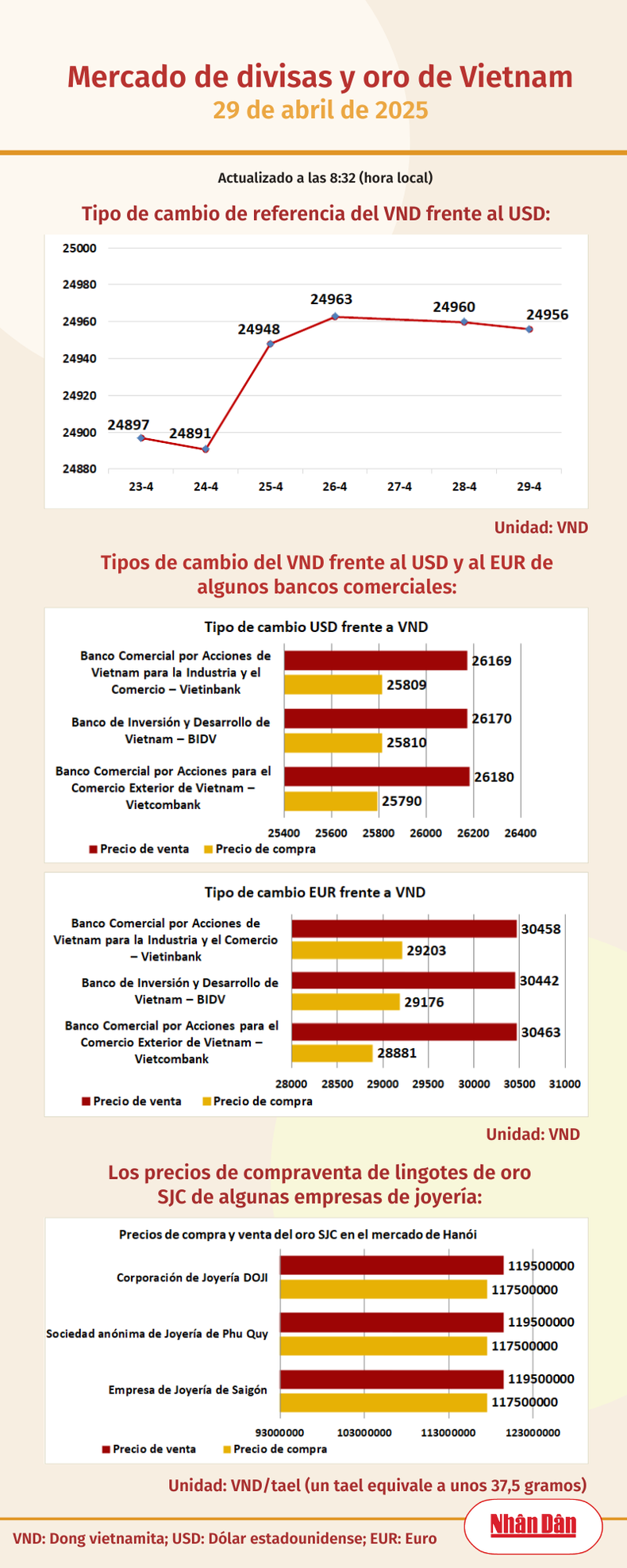 Infografía: Mercado de divisas y oro de Vietnam - 29 de abril de 2025