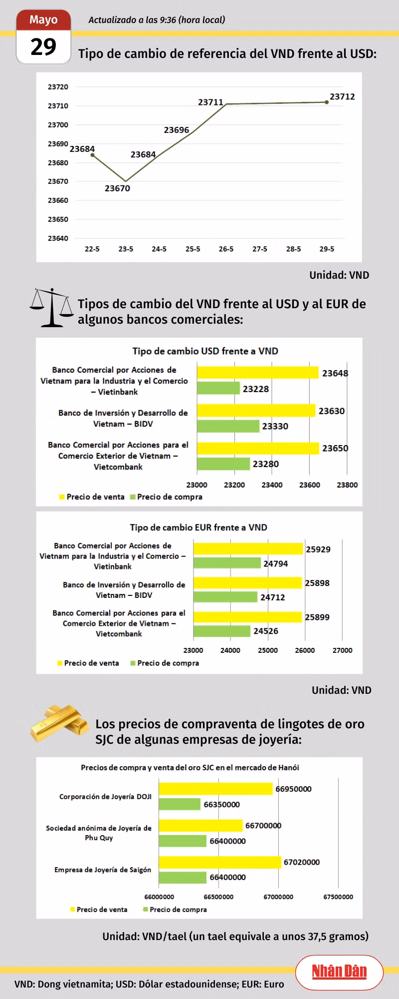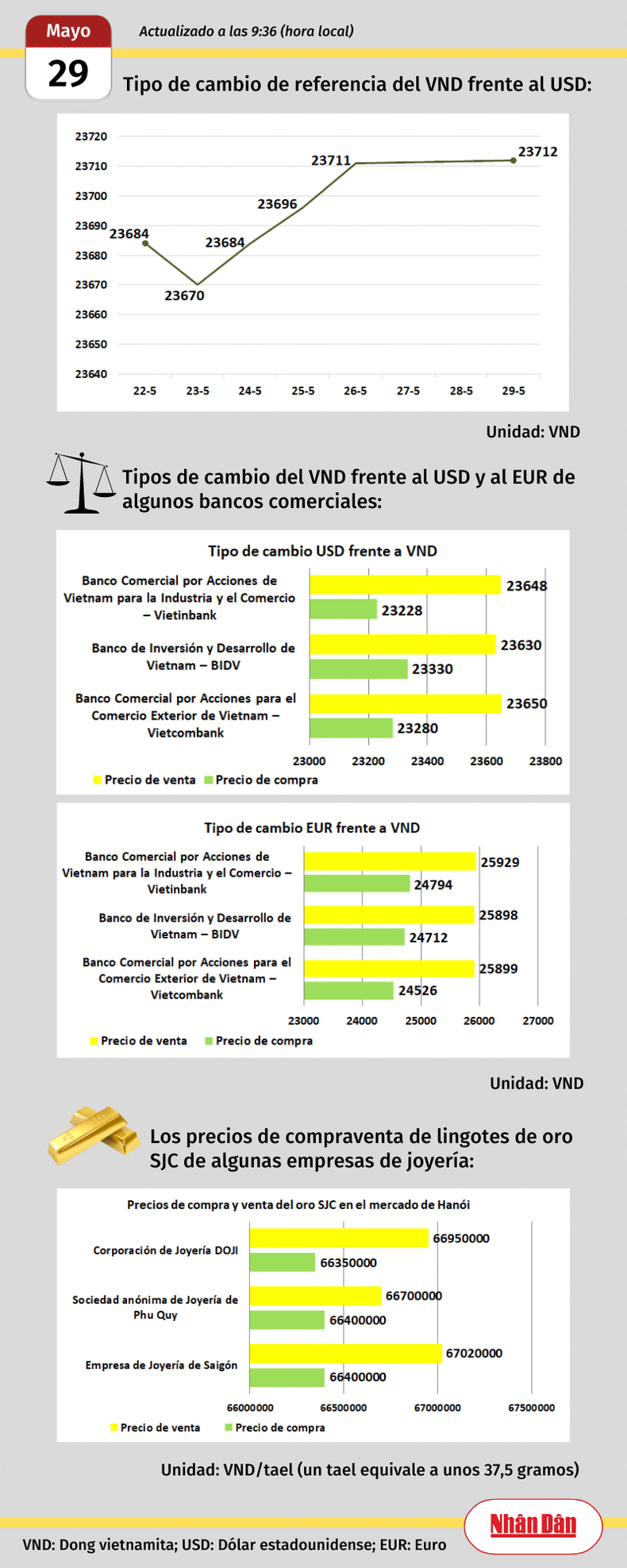 Infografía: Mercado de divisas y oro de Vietnam - 29 de mayo de 2023