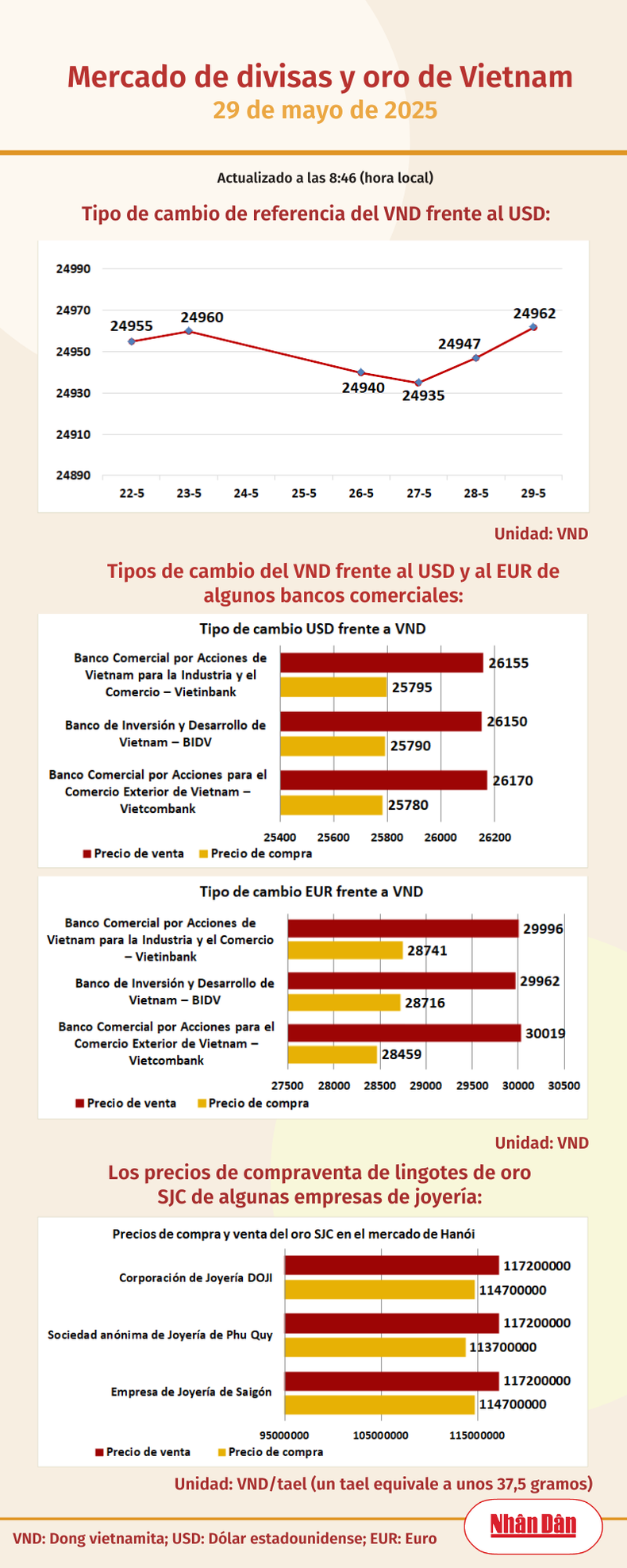 Infografía: Mercado de divisas y oro de Vietnam - 29 de mayo de 2025