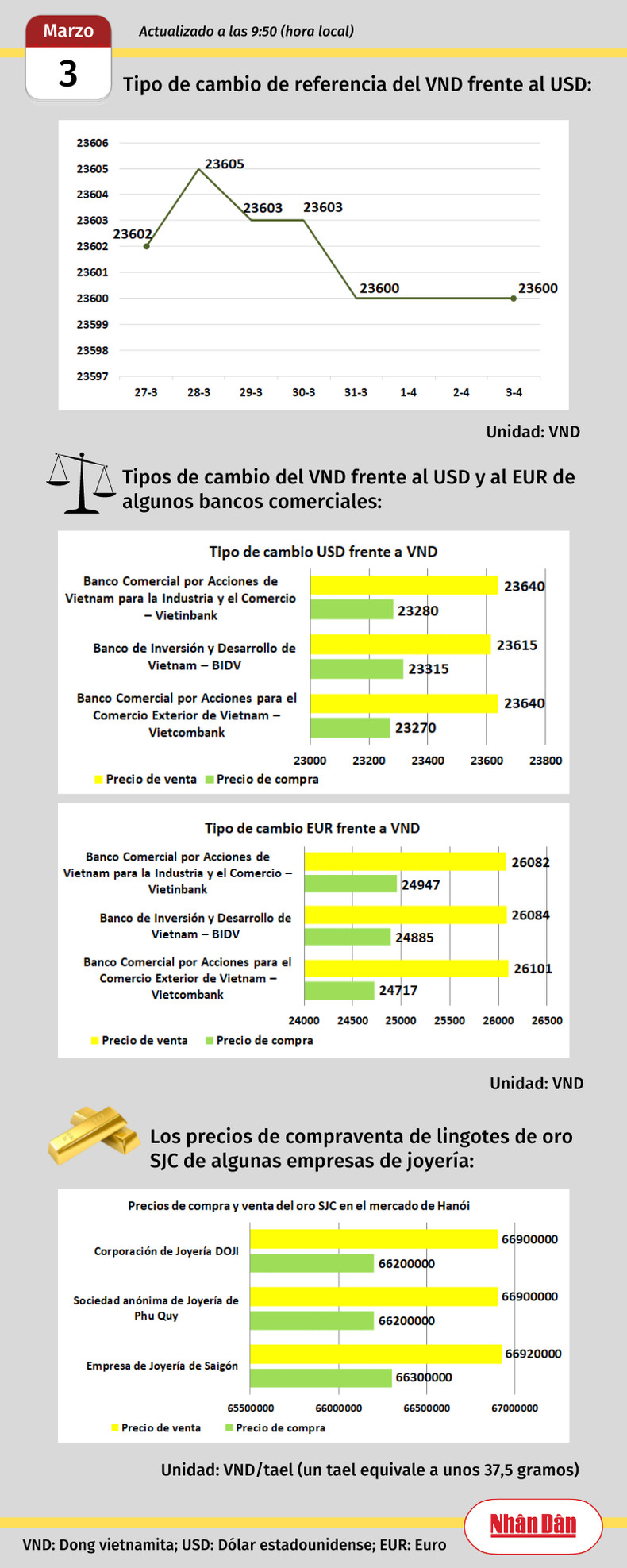 Infografía: Mercado de divisas y oro de Vietnam - 3 de abril de 2023