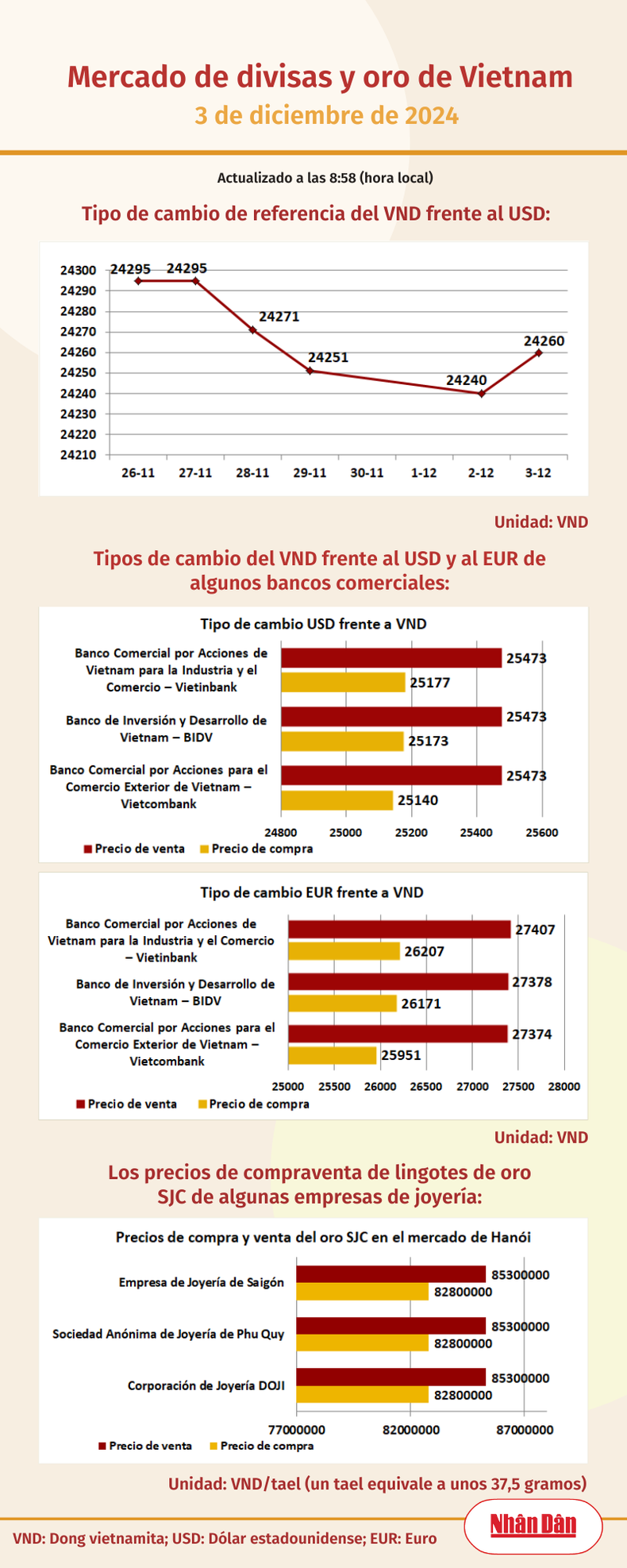 Infografía: Mercado de divisas y oro de Vietnam - 3 de diciembre de 2024
