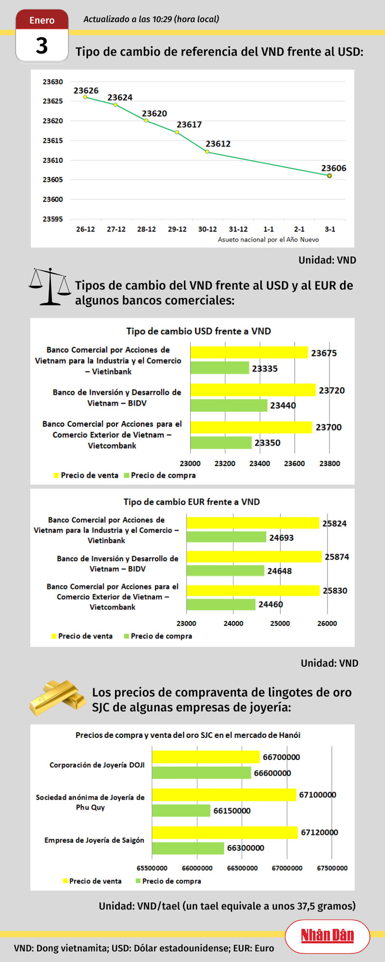 Infografía: Mercado de divisas y oro de Vietnam - 3 de enero de 2023