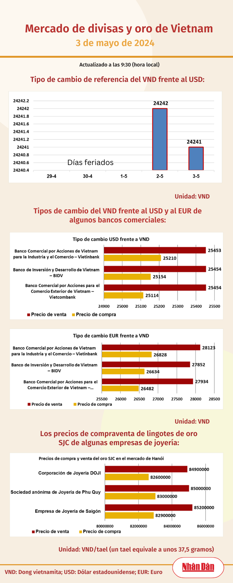 Infografía: Mercado de divisas y oro de Vietnam - 3 de mayo de 2024